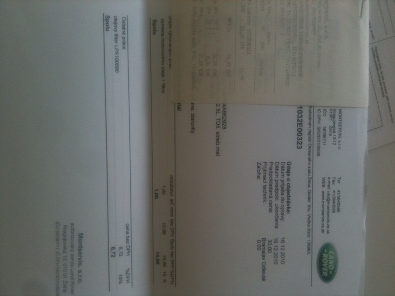 na faktúrke je cena iba za výmenu (prácu). Olej som kupoval sám balený vo fľašiach, žiadny sudový olej. Tým netvrdím, že je zlý, ale "sudy" nemusím. Výmena po 15000km