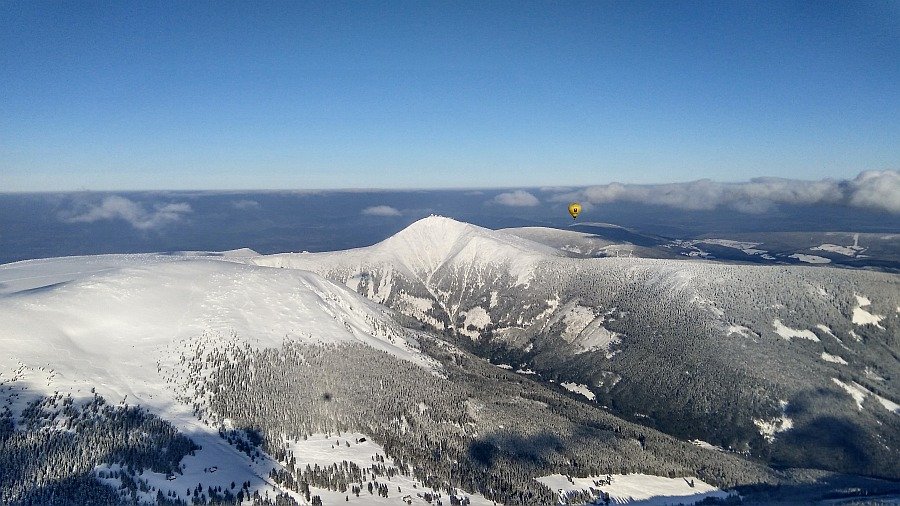 Včera 4 balóny přelet Sněžky.
