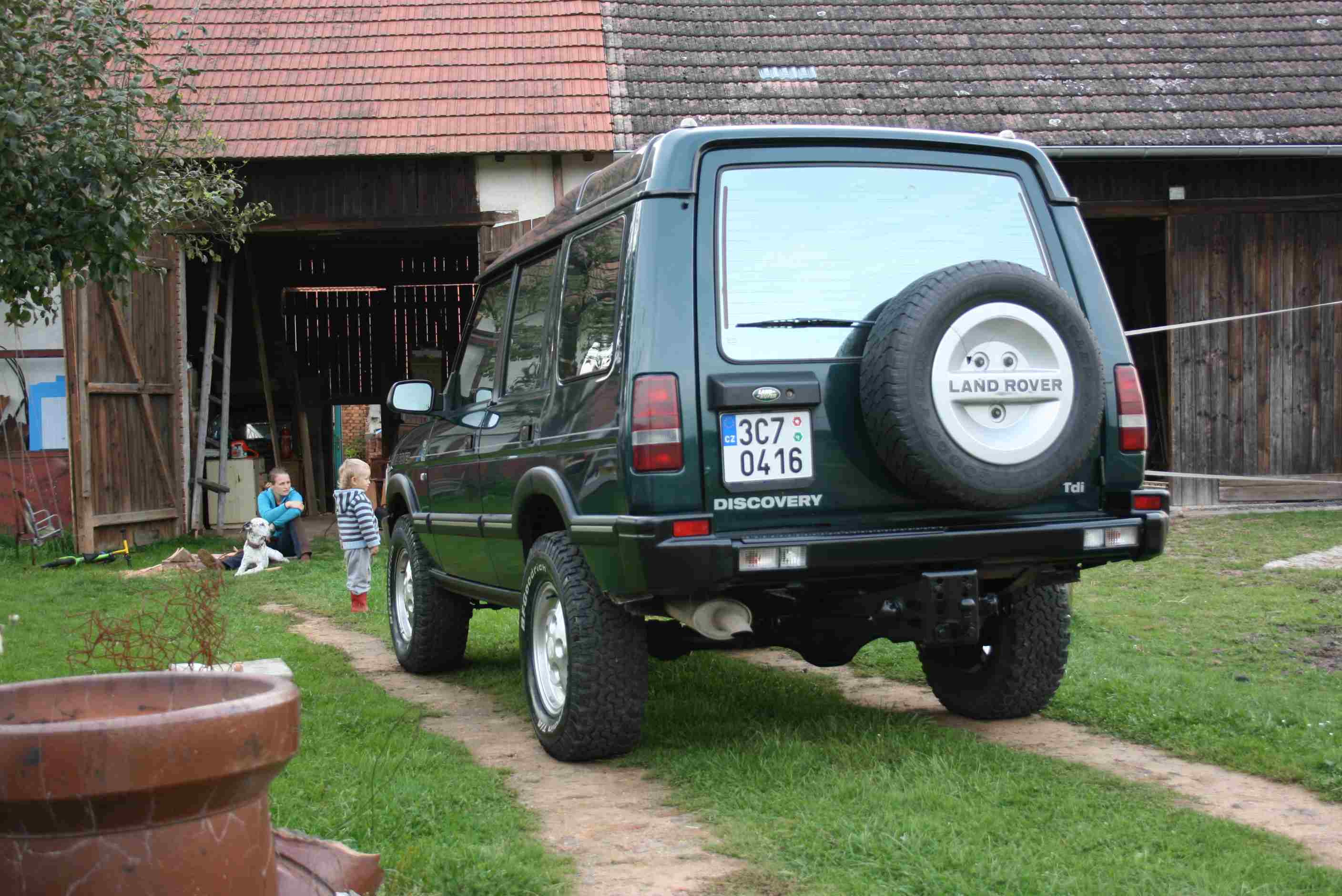 Ex Disco 300 Tdi naviják 5,4t, trocha železa okolo, lemy, zahrádka nějaké světlo navíc a 255/85 R16 BF KM2
