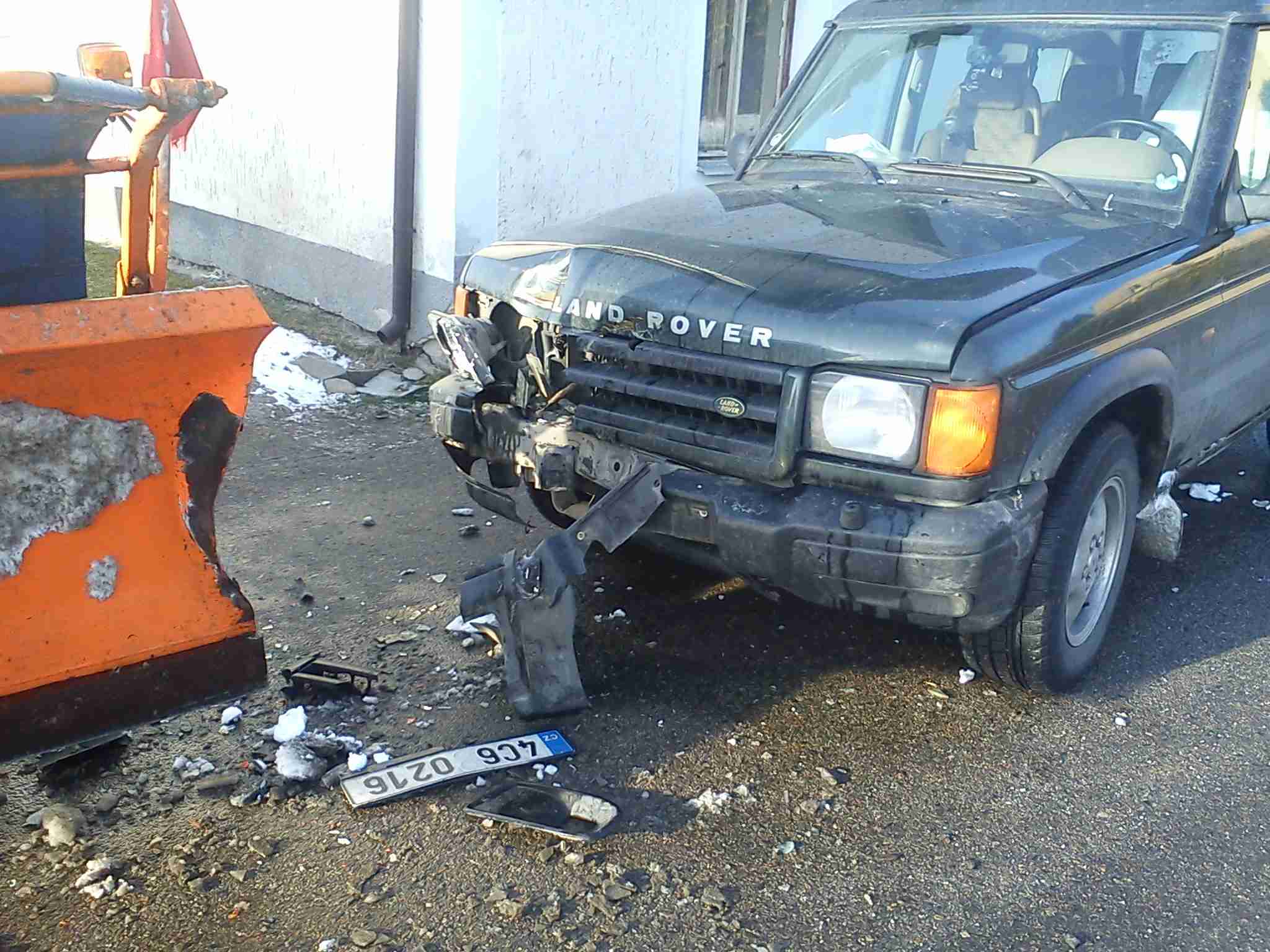 No nejsi jediněj kdo špatně vstupuje do novýho roku. Takhle to dopadlo když mi cestáři nedali přednost a zpoza baráku mi vystrčil radlici před auto.