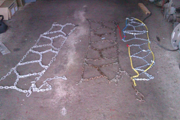 Můj poznatek je,že si zkusmo nasaďte jeden řetěz na sundanou rezervu ještě před koupí ( každý prodejce vám to rád umožní ) . Ušetříte si problémy s velikostí .....ze skušenosti je lepší řetěz o jedno číslo větší,než uvádí výrobce ( dle rozměru pneu ),aby jste je hned nemuseli měnit