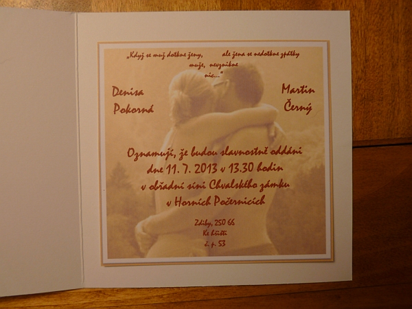 Tak už se nám blíží náš den "D", své ano si s Denčou řekneme 11.7.2013 ve 13.30 na Chvalské tvrzi v Horních Počernicích. Jako svatební cestu jsme si s Denisou vymysleli, že objedeme s naším zvěřincem Českou republiku kolem dokola. Začneme u Hřenska, symbolicky u přechodu s Německem, kde Labe opouští naší zemi. Dále pojedeme proti směru hodinových ručiček na západ, cestou posbíráme pár "geopokladů" a