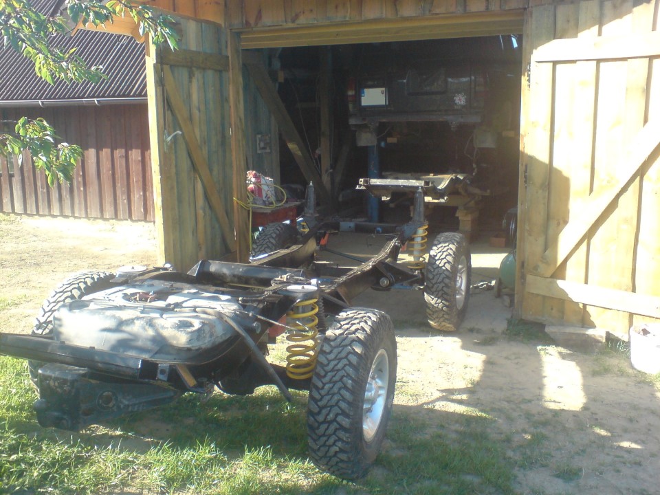 tak po vyoperování měchů a přechodu na pružiny jsem začal zvedat dvojku. pořád je na tom podvozku dost práce ale je to v řešení