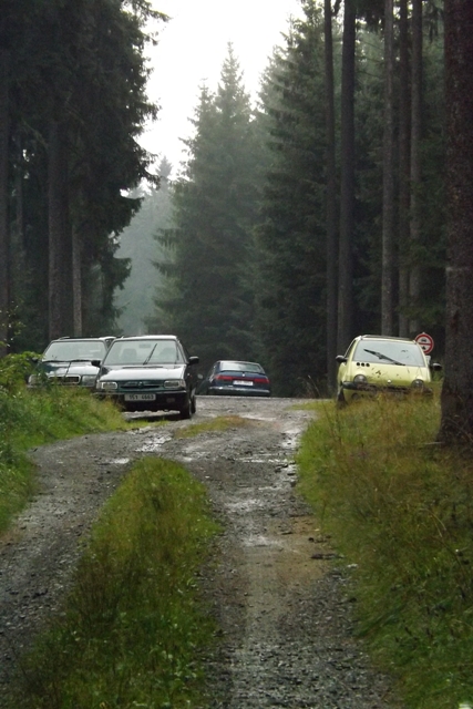 Jel jsem tam Nissanem, ale za sebou jsem měl podval s balíkama sena, kterej byl cca. o půl metru širší jak auto. Chybělo mi asi 15 cm abych tam projel a i kdybych se vešel, měl bych strach že se mi to na nějaký díře zhoupne a jedno z těch aut půjde k lakýrníkovi. Jinak objet to není kudy, možná si nejdřív udělat cestu motorovkou