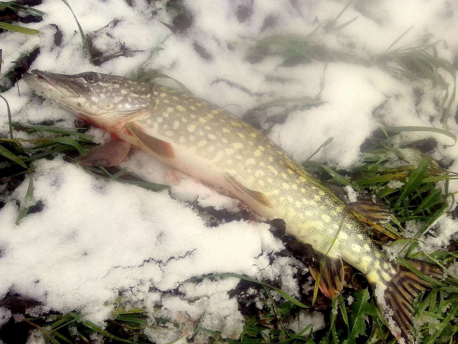 Nerobil som ziadne fotky v nedelu, ale Bodrog 1 stuka, Laborec 1 zubac. Obe ryby sa mi vypli pod nohami pri zdolavani. Preto nemam foto. Nehadzte flintu do zita, zubac a stuk su aktivny aj v zime. Foto je z Zemplinskej Siravy. Zimna stuka a zubac.