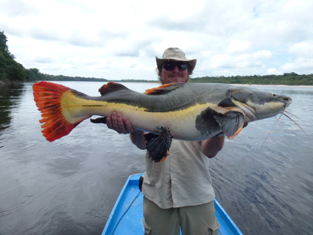 Jsem právě v brazilský Amazonii, tak přikládám dva kousky místního sumce Pirarara (Anténovec červenoocasý), 16 resp. 21kg. Ještě se chystám na okouny, pokud bude zájem, tak zveřejním pár fotek.