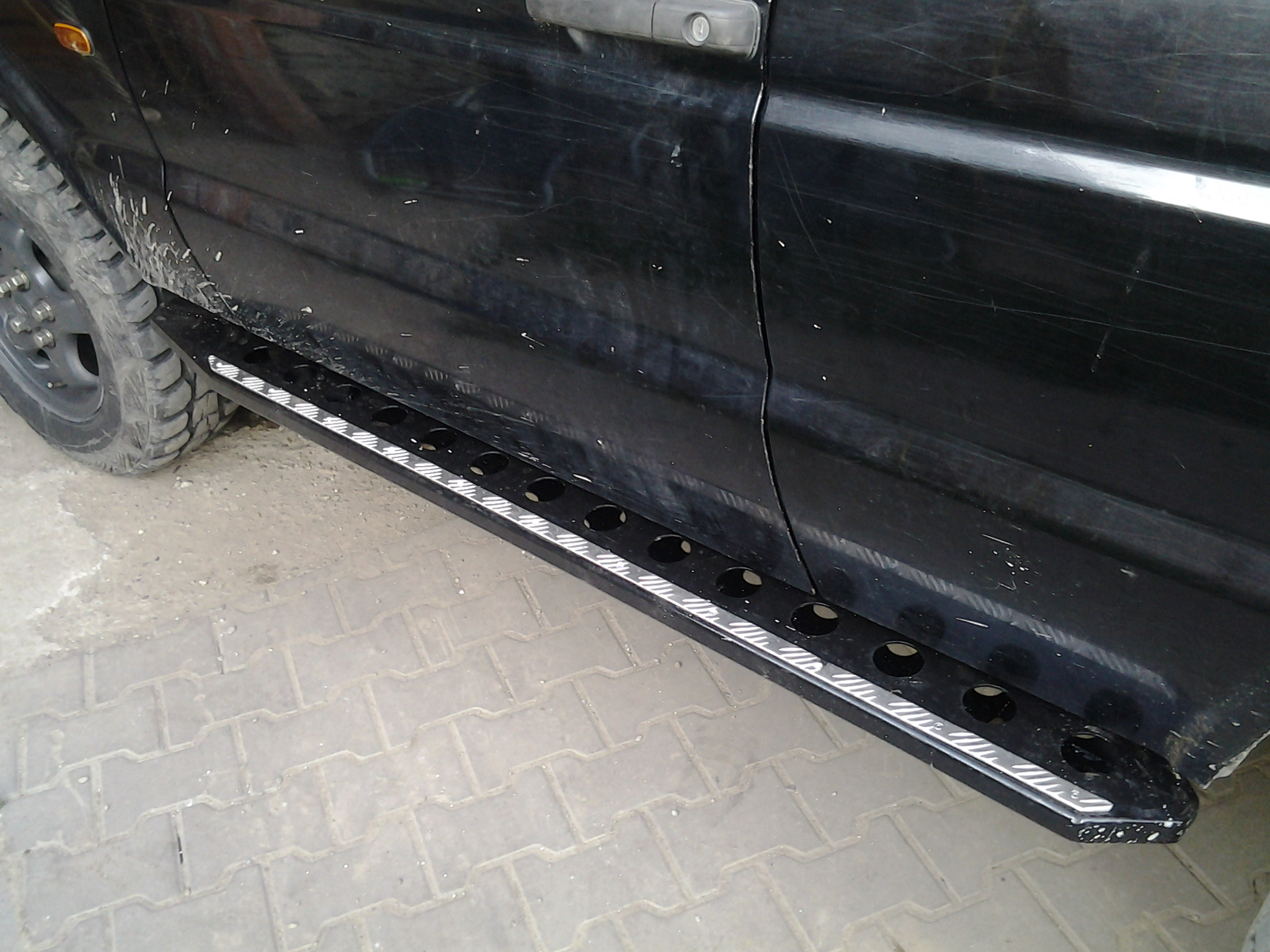 to som si vsimol a drzim ti palce,prisiel si zo zaujimavym riesenim(narazniky)ale v tomto pripade si sa mal drzat klasiky,zarucujem ti ze to budes mat vkuse plne bordelu a nemusis chodit ani po blate,kola ti tam nahadzu prach, kamienky,listie ,odkedy som zhodil origo naslapy tak mam vkuse zadrbane blatniky a dvere a ani sa nemusim hontrsat po blate,ty polovicu toho bordelu budes mat v naslapoch...ak mas tie diery proti sebe tak tam vovar tenkostenu trubku