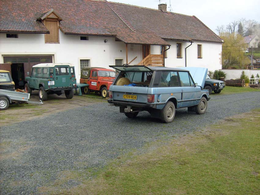 Tak tady je můj nový poklad - Range Rover Classic - dvoudveřový 3,5 l V8 karburátorový, 5-ti kvalt manuál LT77, ročník 1983, najeto poctivých 152 tisíc (po pohledu do útrob hlavy motoru, kde je pouze jemně zlatavý povlak, to můžu definitivně potvrdit). Má zajímavou historii - je to LHD model, specifikace pro Saudskou Arábii, kompresní poměr 8,13, nastaveno pro benzin normal - 91 oct. - 132bhp a 250Nm. Poprvé do provozu byl ale uveden pravděpodobně až v roce 1985 a v roce 1988 se vrátil na Ostrovy, kde jezdil doposud. Včera jsem ho koupil poblíž Granthamu, skočil do něj a přijel domů po ose. Nezazlobil ani trošičku, jel krásně a skoro mě šokovala spotřeba. Očekával jsem něco kolem 20-ti litrů a ono to bylo 12,6 l/100km po Anglii, kde jsem jel max.120km/h, ale párkrát jsem se taky zasekl v koloně. Po kontinentě jsem už spěchal 130 - 160km/h se spotřebou 15,3 l/100km, což je myslím pohoda 8) 8) .