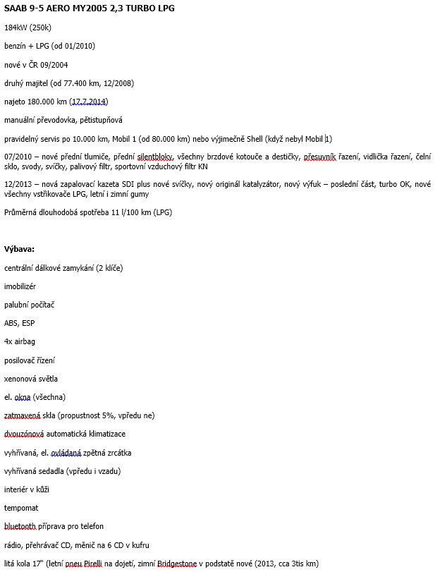 Prodám svůj SAAB 9-5 AERO LPG, 250k, MY2005. Auto je ve výborném stavu, STK do 09/2014, najeto 180tis km. Ostatní viz popis nebo na dotaz.