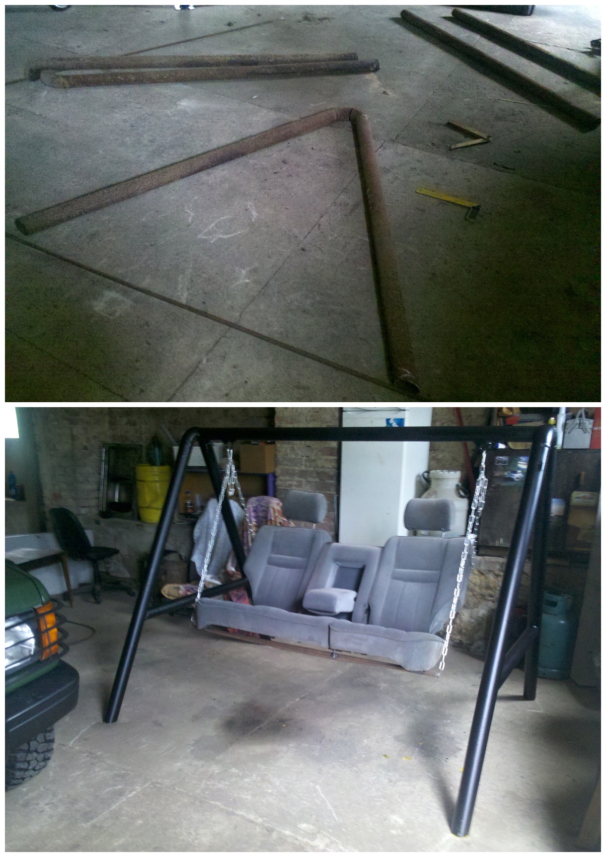 Nevím kam jinam to nacpat, tak alespoň sem. Příklad a inspirace pro využití už "nepotřebné" sedačky. V mém případě zadní sedačky z P38, darované jedním z uživatelů fóra. Materiál na konstrukci je už starší, ale na tohle ještě poslouží... a na to aby to někdo ukradl bez tý sedačky do železa ještě dost dobrý, navíc do nového se mi investovat nechtělo.