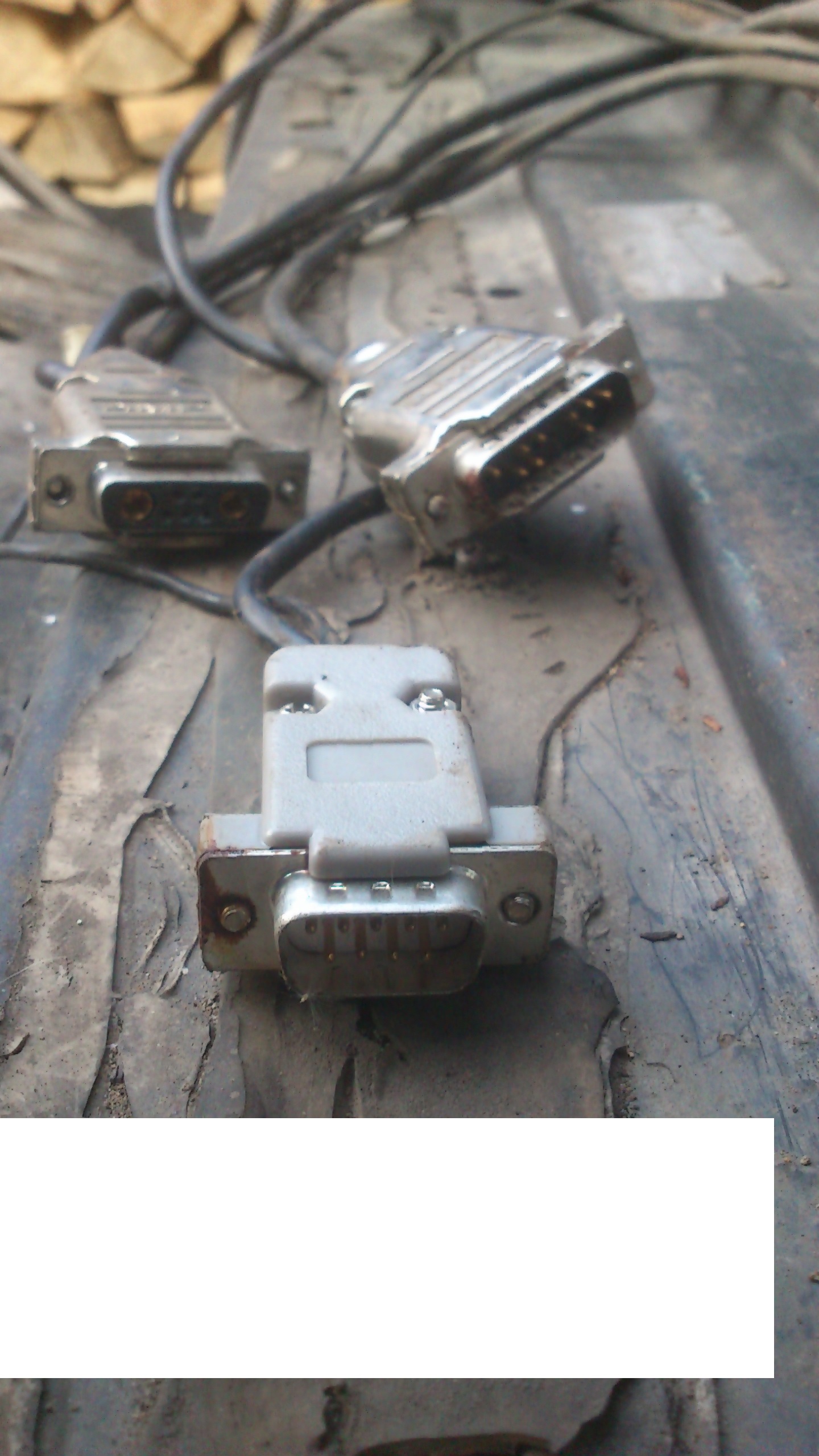 To vypada jak stare kabely pro seriovy port (rs232) - klasicky pc 9pin, jeste starsi 15pin a ten s tema velkyma dirkama je snad nejaky stary mac.