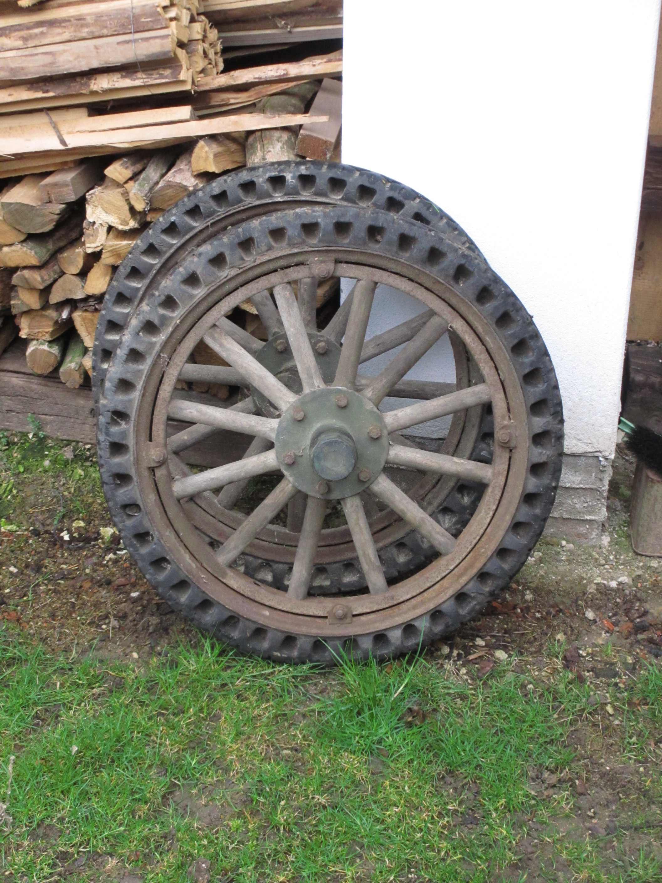 Ahoj, mám tu na prodej loukoťová kola s plnou gumou značky firestone. Netuším k čemu patří a ni kolik mám za to chtít jen jeden místní je chce za 2000,- Jsou pouze dvě, ráfek kov paprsky dřevo,střed mosaz. Jestli někdo něco kolem nich vypátrá na co to patří nebo dokonce dokáže použít tam kam patří udělá mi radost. Jinak o víkendu jedu do Přeštic tak mohu přiblížit.