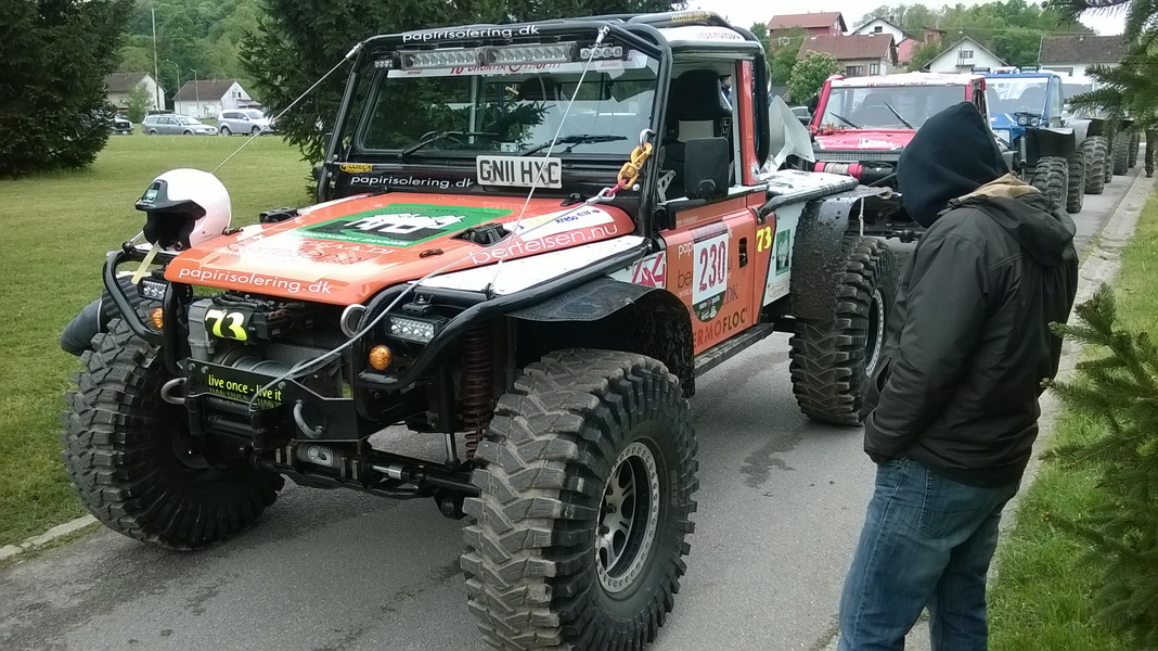 Popis auta tedy opět jenom zkopíruji :wink: Ty Jeepy jsou v podstatě stavěné na rámu z Discovery, trubková konstrkuce s laminátovou jako kapotkou ve tvaru JEEPa :grin: nápravy upravené portálové z Volva 303 (pevnostní věci uvnitř, zrychlené převody, čtyřsatelitové diffy atd) auta mají plně hydraulické řízení, mechanický naviják (který umí jet i přes 50km/hod :shock: ) Motory a převodovky do toho dává různé, podle přání zákazníka. Většinou to jsou ale nějaké větší benzíny.