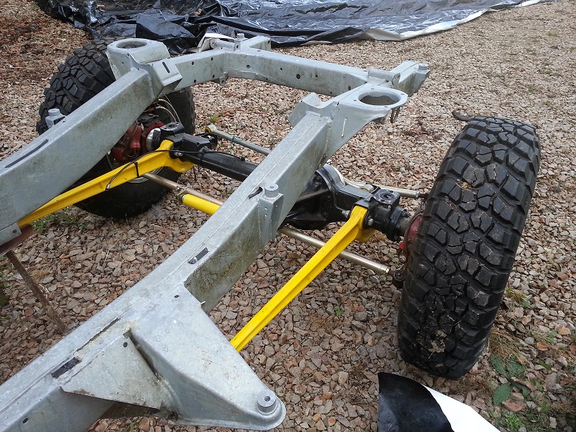 K nápravám je komletní 2" podvozek, pruziny Britpárt, tluniče Procomp 2000, k tomu všelijaké držáky předních a zadních tlumičů a podložky mezi nápravu a pera, prostě vše aby to spolu pracovalo jak má.