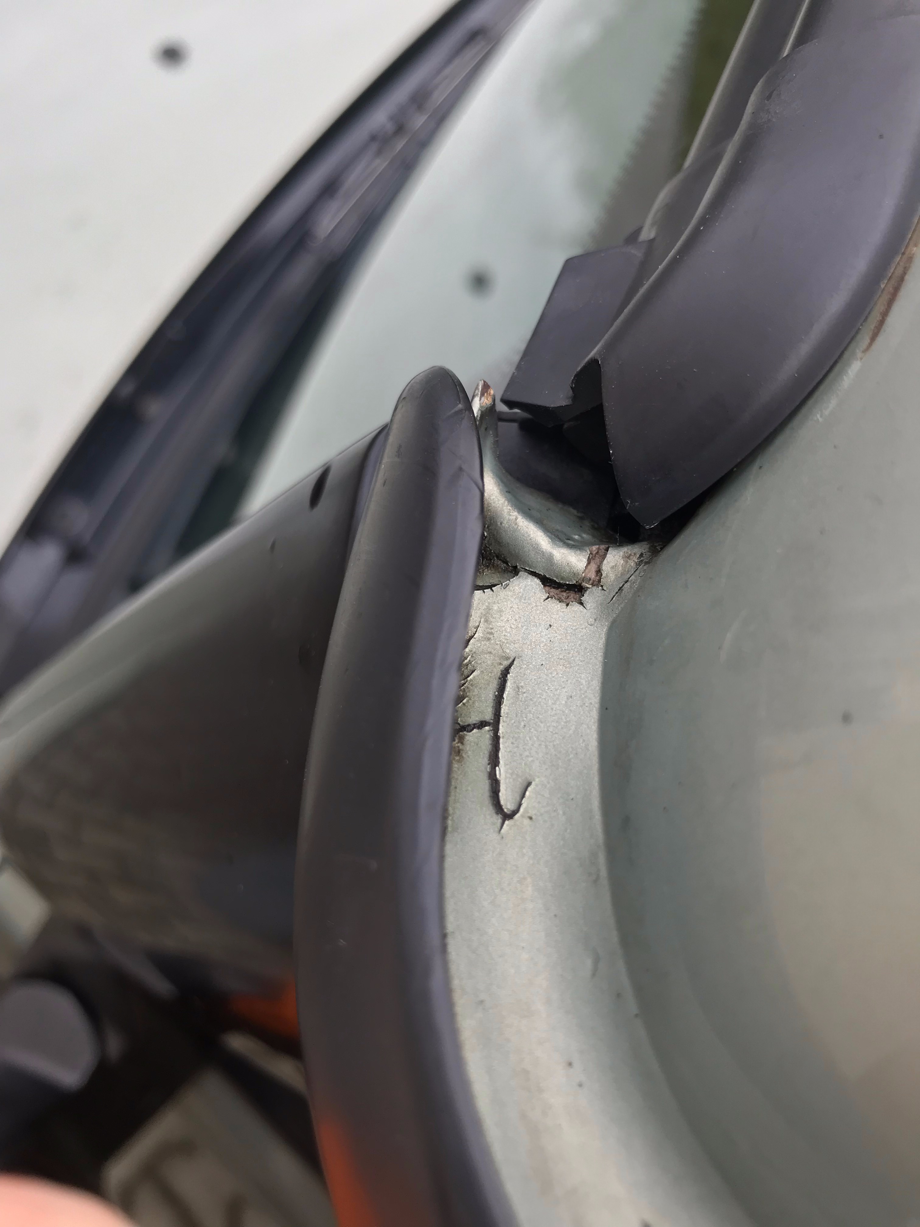 Ještě doplnuji fotky rohu předního sloupku kudy teklo (to jsem si všiml u více aut, že to tam praská). Docela by mě zajímalo, jestli ta kontrukce je oslabena otřesy nebo tam je nějaké pnutí, nebo něco jiného? Každopádně se zdá, že je to časté místo. (Vím, že se tam spojuje karoserie). Sundal jsem krycí plast a místo odmastil technickým benzínem (kam jsem se dostal) a zatmelil černým PU tmelem od Den Bravenu.