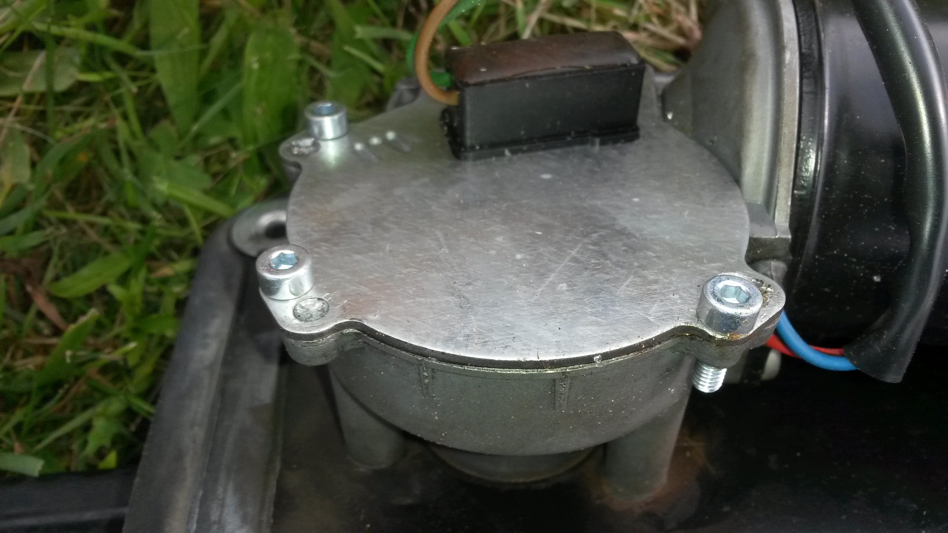 Pak tam mám fotku jak je to vyndané, také fotku toho krycího plastu a nakonec fotku samotneho motorku, který má v části za šnekovým převodem uvnitř i kontakt koncove polohy. Ta šneková převodovka je zanejtkovaná, ale vedle každého nejtku je příprava pro kutily, kteří zde snadno vyříznou závit m4 a tak lze znovu převod uzavřít - já imbusama.