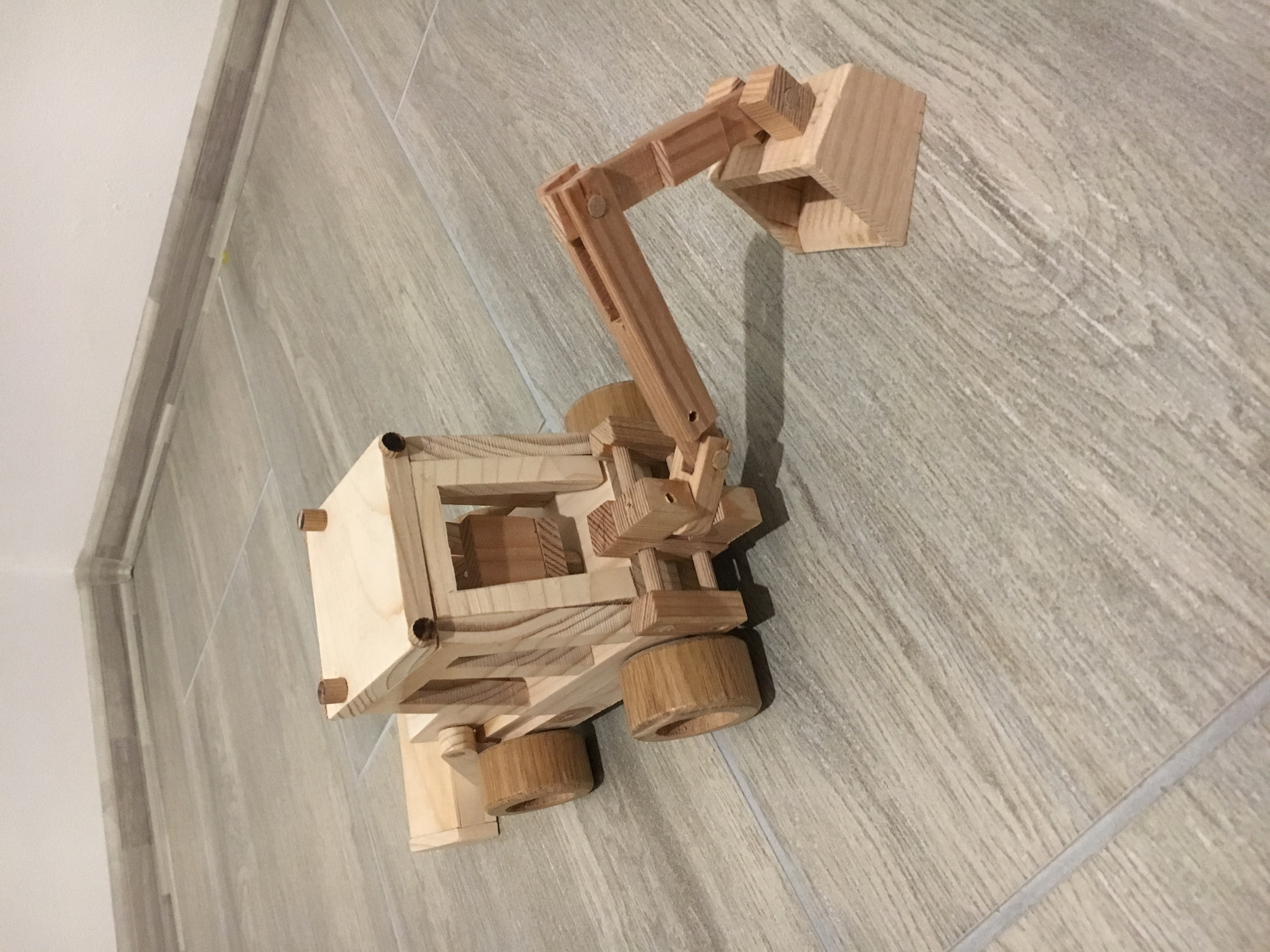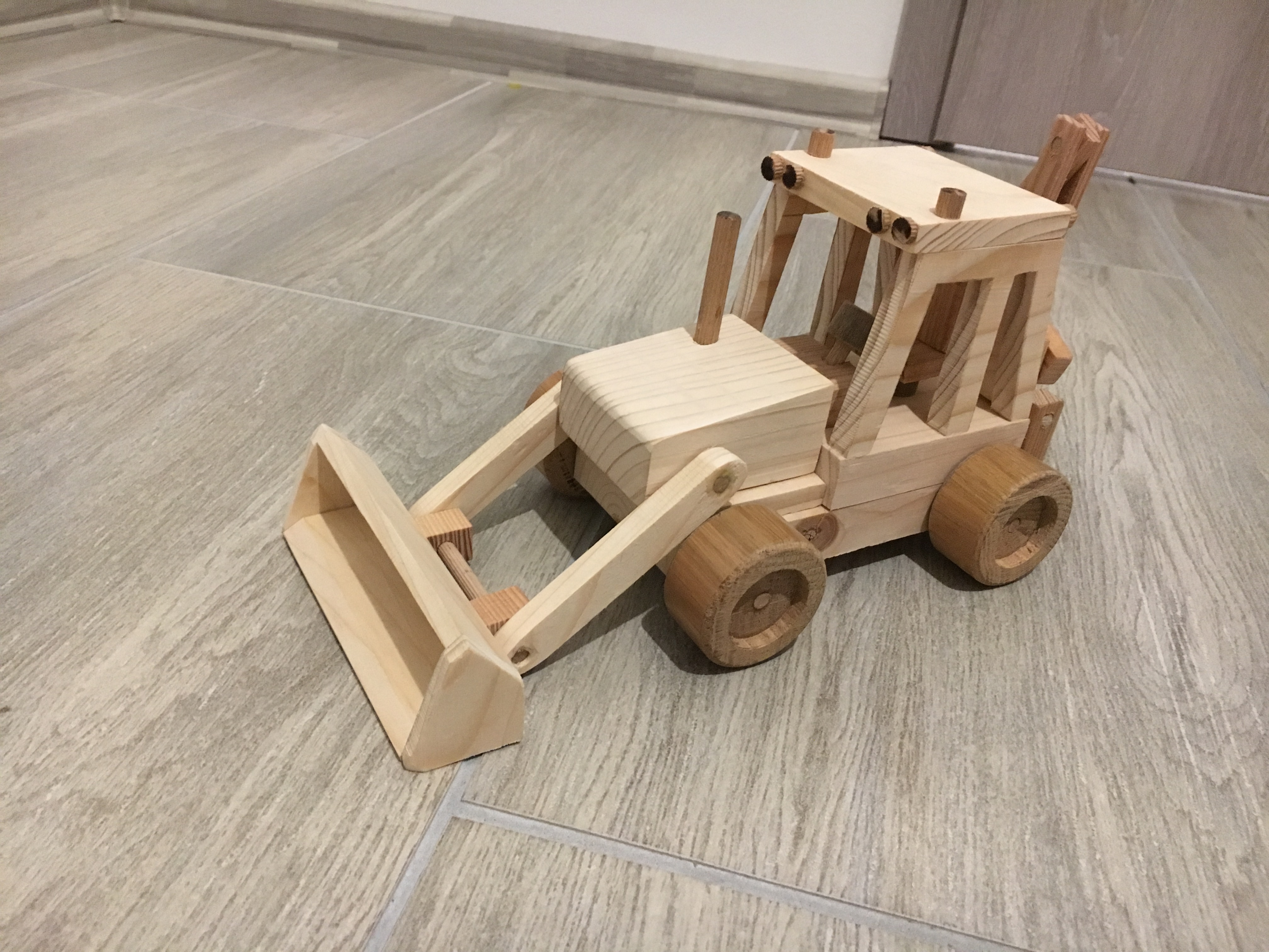 Byl by zajem? Vyrabime s deckama ve skole dreveny hracky, Traktorbagr ma predni nakladac i zadni podkop plne pohyblivy, bocni posuv podkopu