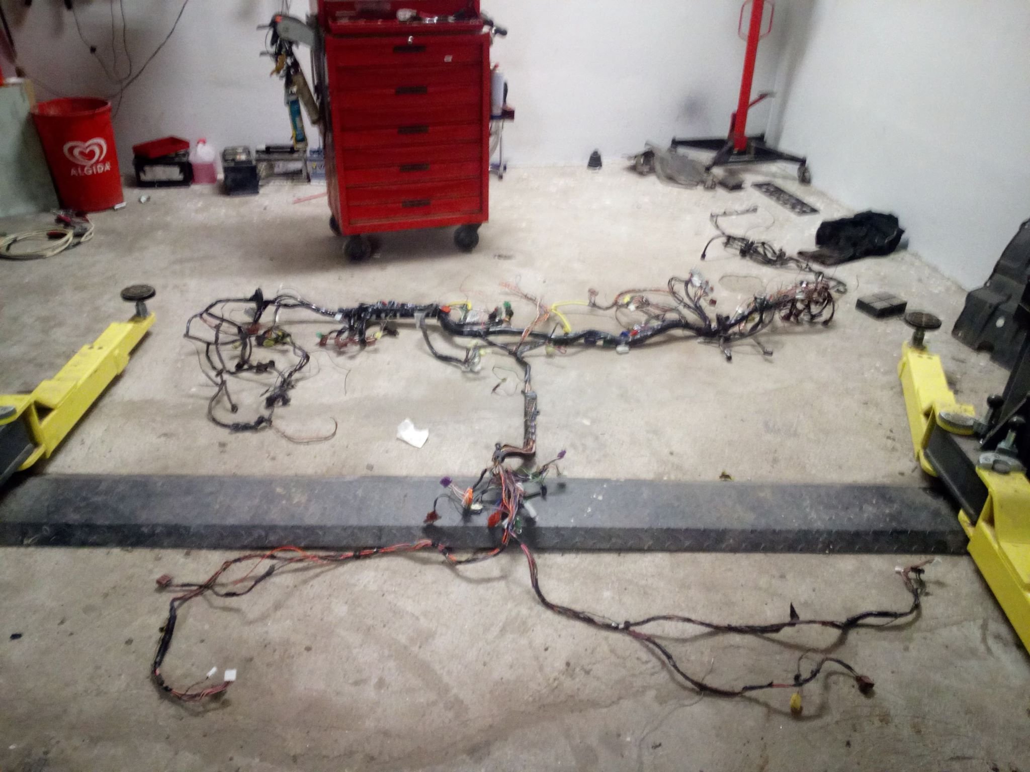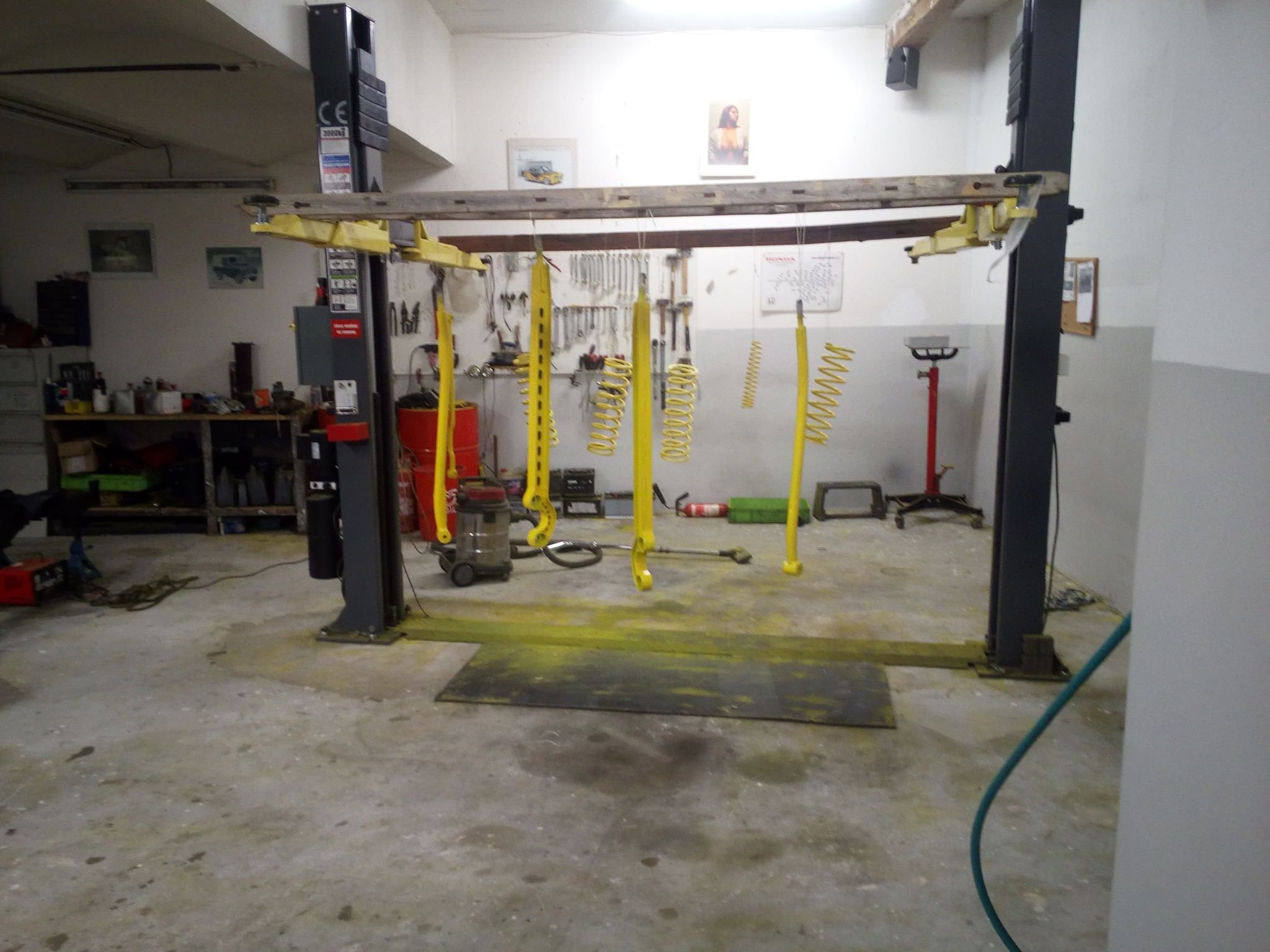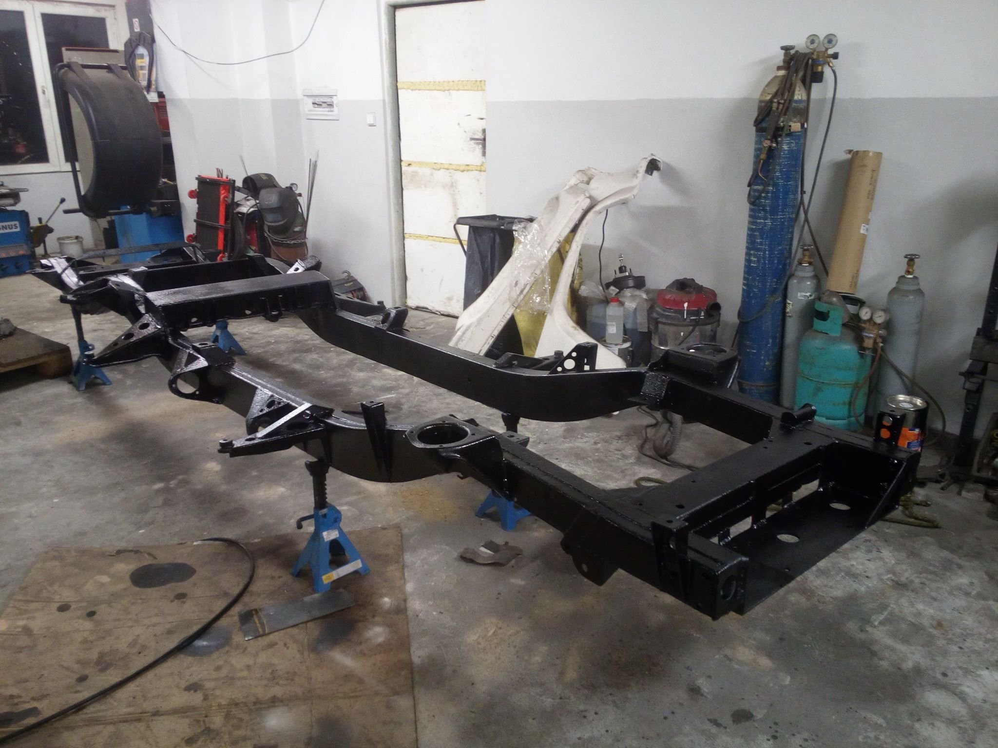 Sice jsem sem nic nepsal, ale stale pracuji. Po dokonceni blatniku jsem udelal motorovy prostor, pustil jsem se i do elektriky, bude tam z D2 ale ocesal jsem ji o veci ktere nepotrebuji jako ABS el. prevodovka , motor Td5 a tak. Pak uz jsem musel zacit davat dohromadi interier jak z psychického hlediska aby se uz neco pohlo tak uz jsem nemel kam vse davat. No a aby to uz zacalo dvat smysl musim zacit odspodu takze jsem se pustil i do ramu, prevarit drzaky kastle , zadnich pruzin i predni napravy, nechat opiskovat pozinkovat a vcera a dnes strikat, nejhorsi byli pruziny to se dilna promeniula na repkove pole a byla cela zluta.