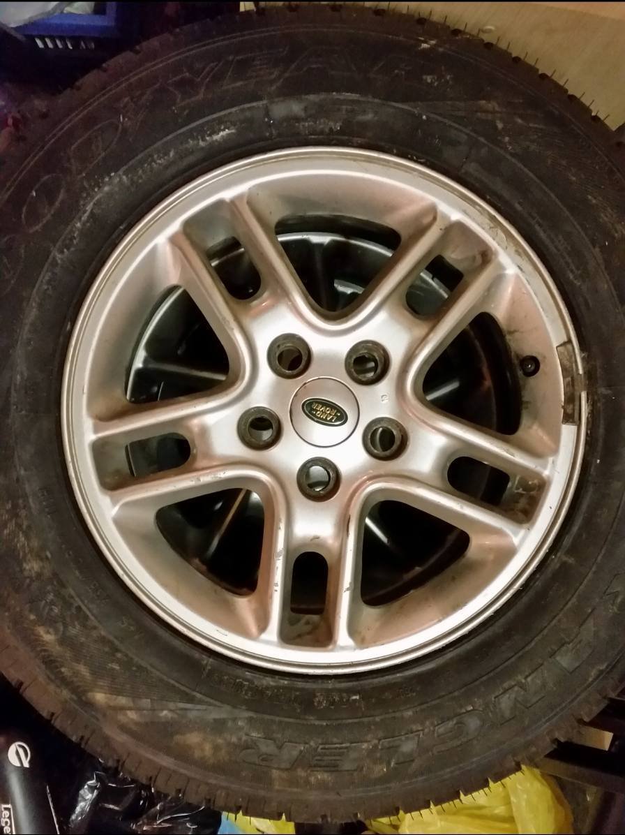 Prodávám disky R17 s pneu Goodyear Wrangler M+S 237/70 R17. Hloubka vzorku 7-8 mm. Po dohodě možno i zvlášť. Cena za pneu 3700, cena za disky 3700, při koupi dohromady za 6200.