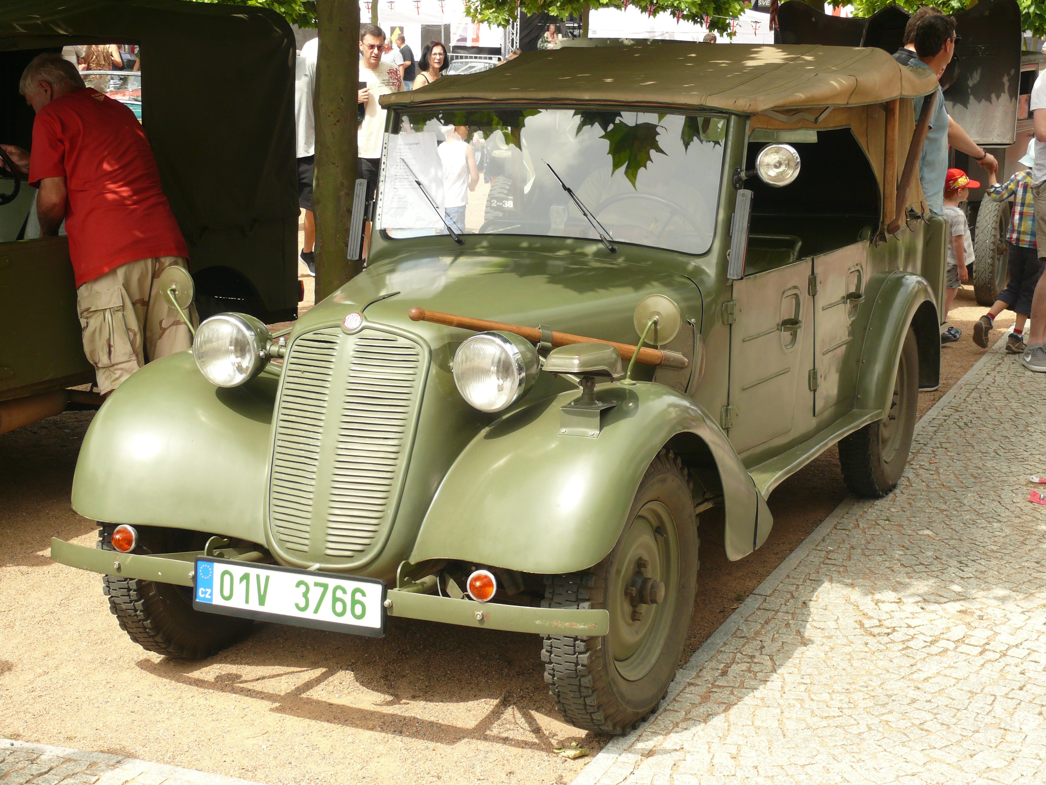 Stejně jako před 2 lety bylo horko na chcípnutí, tj. dolnobřežanské náměstí bylo rozpálené do běla - po příjezdu jsem si našel krásný flek pod stromem, ale protože jsem byl pořadatelem vybrán, musel jsem zaparkovat vpředu mezi ostatním výběrem britských vozidel. Společnost Jaguaru E-Type, Mini, Lotusu Super Seven (nebo jeho repliky) a Morganu 8 byla čestná, nicméně tam celou dobu výstavy pralo slunce a Pekelník byl rozpálený jako pětikoruna i v klidovém stavu