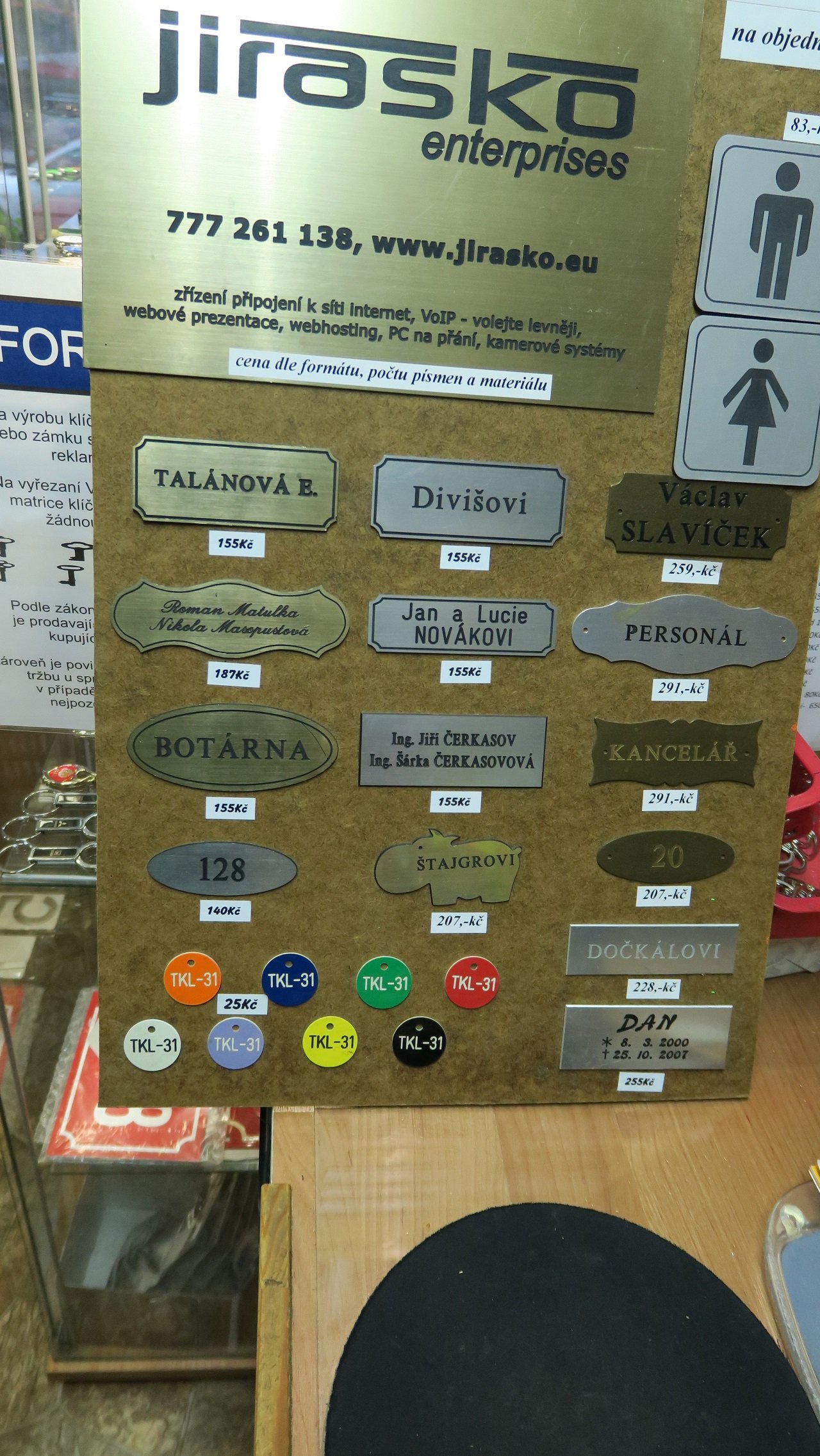 Zdravím,rozšíření služeb o gravírování a výrobu razítek,dále prodej vložek, zámků.Umíme vinko na plech, můžete si určit sílu a velikost plechu a výška a šířku písmen také, v příspěvku plech 2mm 145 x 50mm velikost písmen 9mm .Dále gravírování ,mosaz nebo plast.Cena na dohodě ,zasíláme.