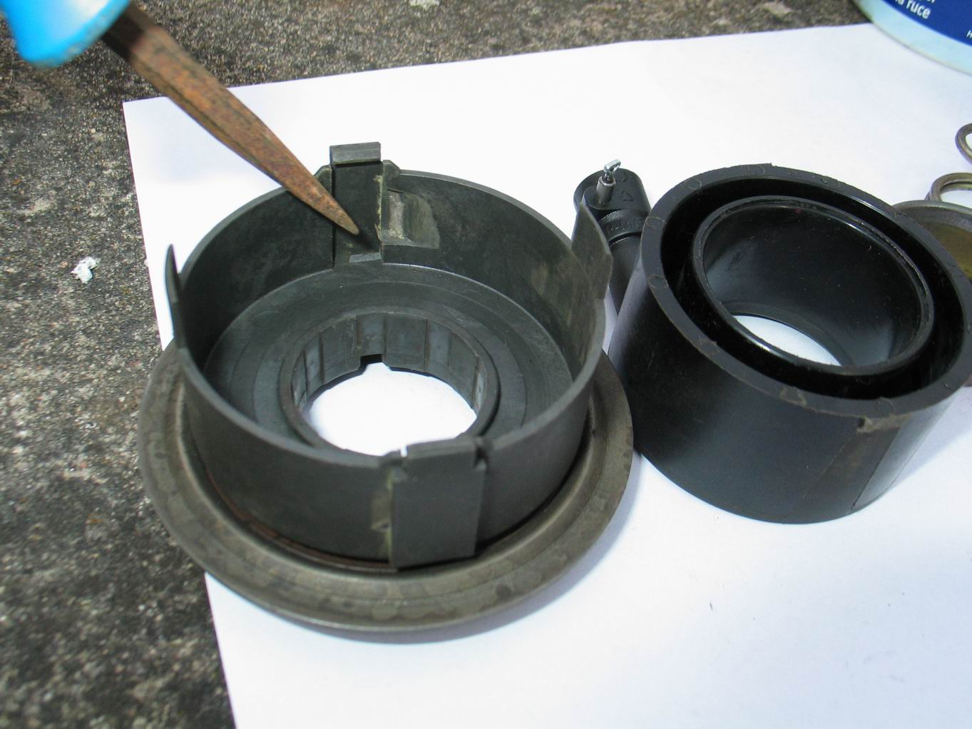 Posílám dodatečně pár fotek kde je v hydraulickém ložisku problém. Je vidět jak je to tam vydřené a pak to prostě drhne a spojka nechodí jak má.