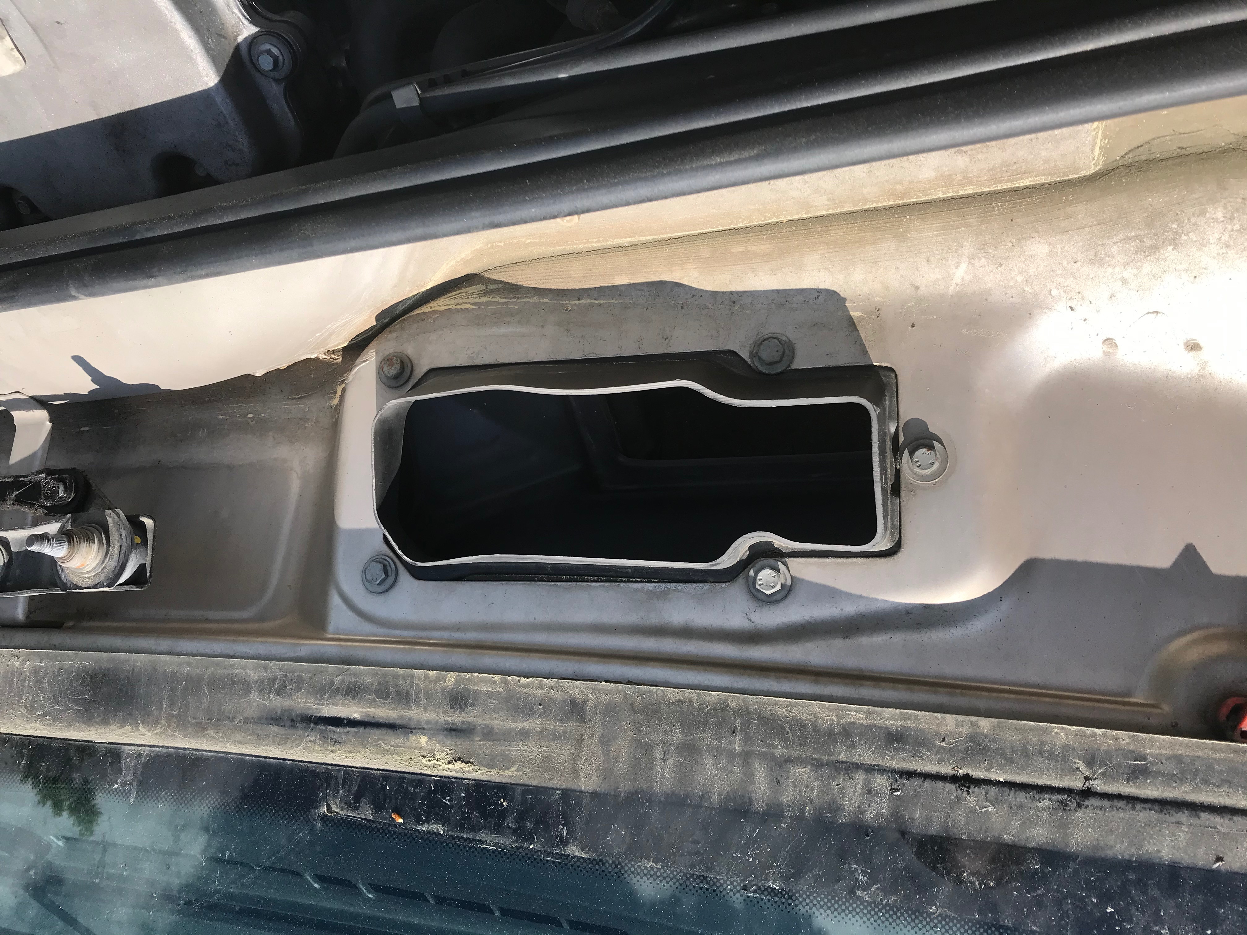 Já to zalepil. A při stékání většího množství vody jsem zjistil že to přez hranu teče rovnou dovnitř a pak u spolujezdce ventilátorem ven. Vyrobil jsem z plastu takovou stříšku aje klídek.
