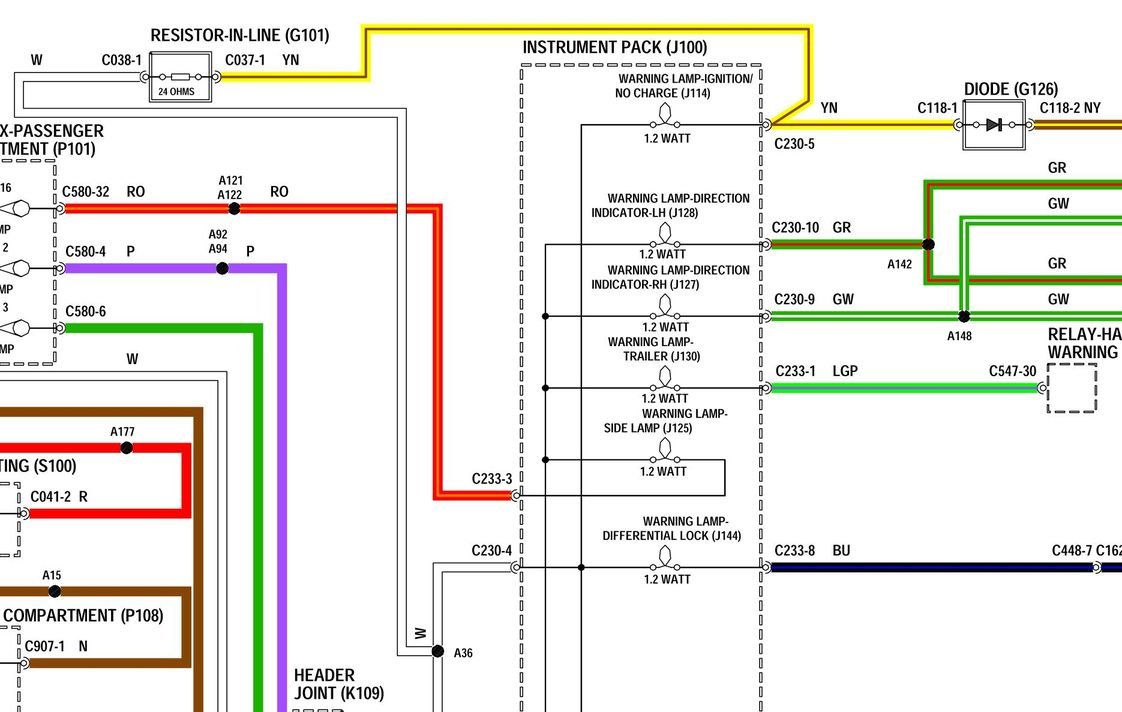 Pokud by někdo hledal diodu, tak by měla vypadat takto. Je zasunutá v patici. Ale pozor, za přístrojovkou je ještě jedna dioda sloužící k ověřování funkčnosti kontrolky teploty oleje převodovky (vedou k ní šedo-červený a bílo-žlutý drát, viz foto)