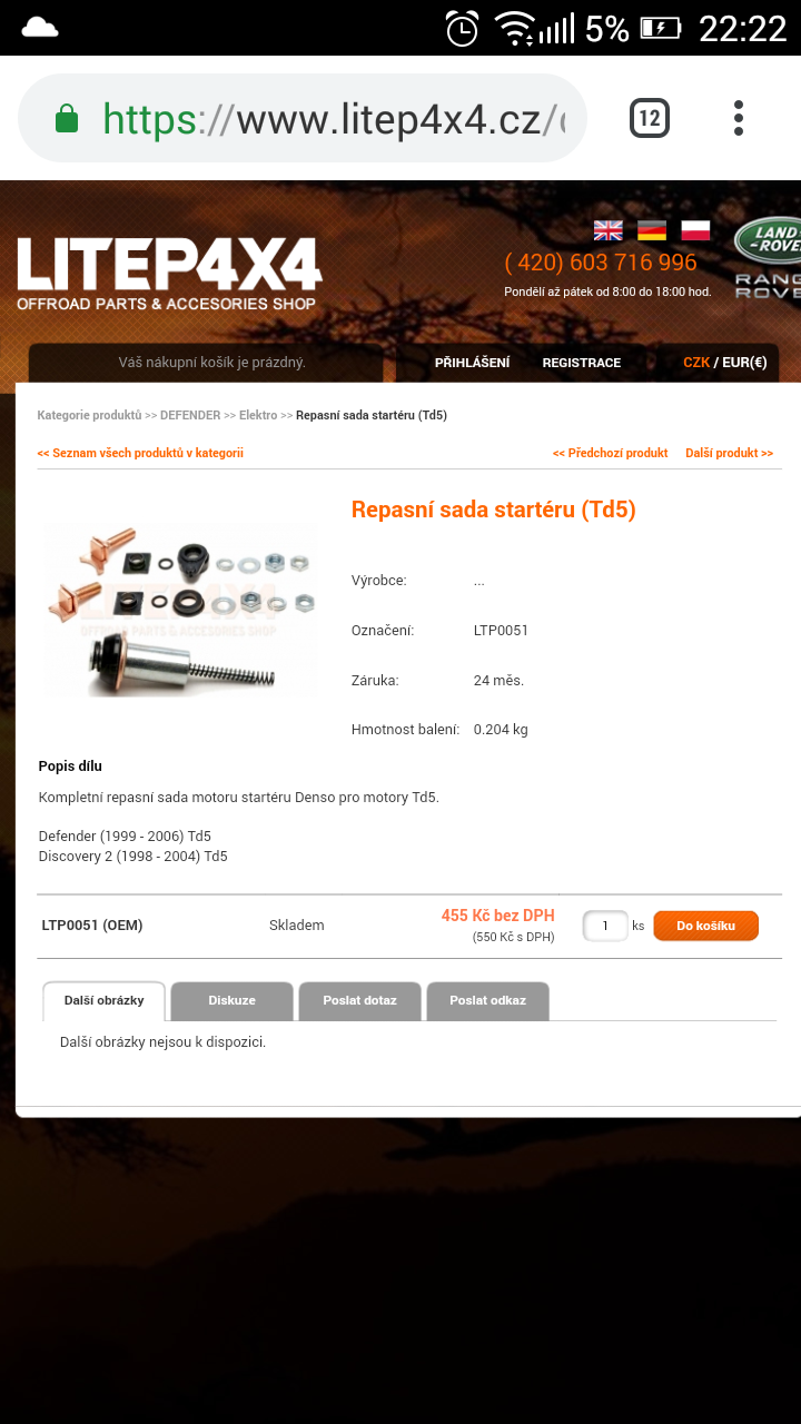Ahoj. Neporadil by mě někdo, kde bych sehnal opravnou sadu na startér freelander 2,0 d rok výroby 1998, takové ty 2 měděné plíšky a kulatý. Děkuji Petr. Nebo startér.