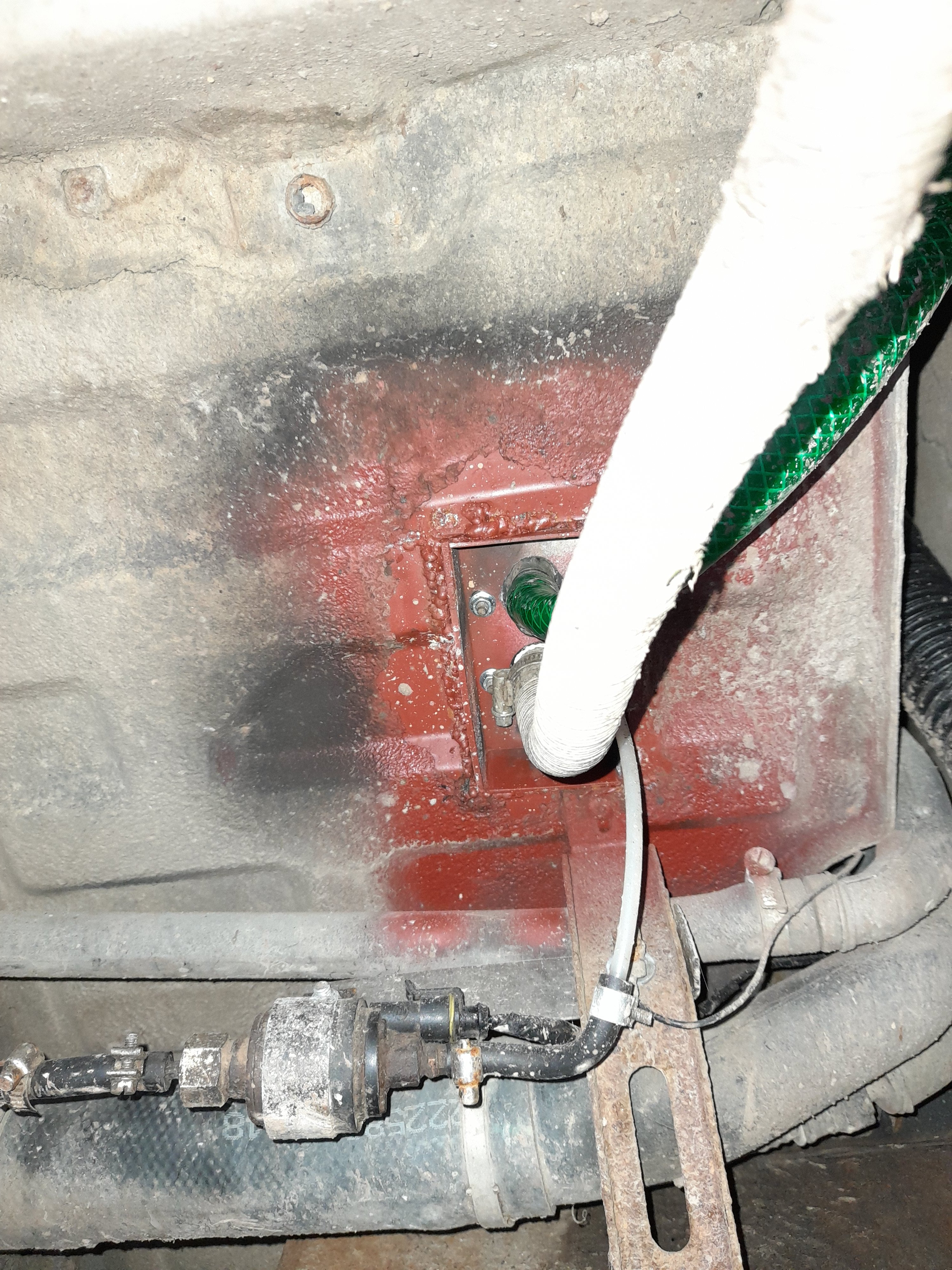 Tu zelenou zahradní hadici vyhoď, topení má málo vzduchu, zasereš si topení sazemi.....