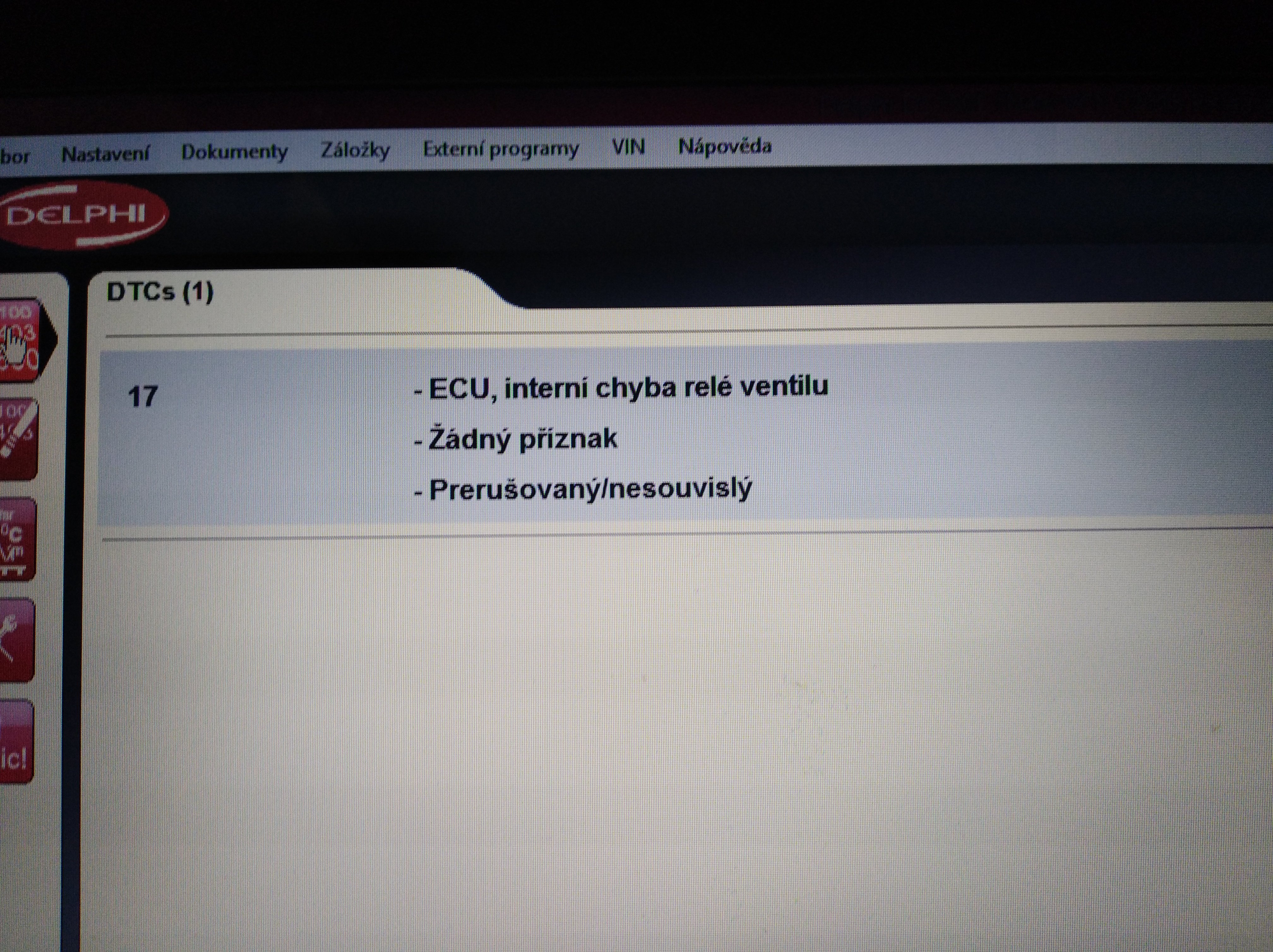 Zdravím mám tú istú chybu na mojom f1 a tiež používam Delphi v angličtine je to ECU internal Valve relay faul.