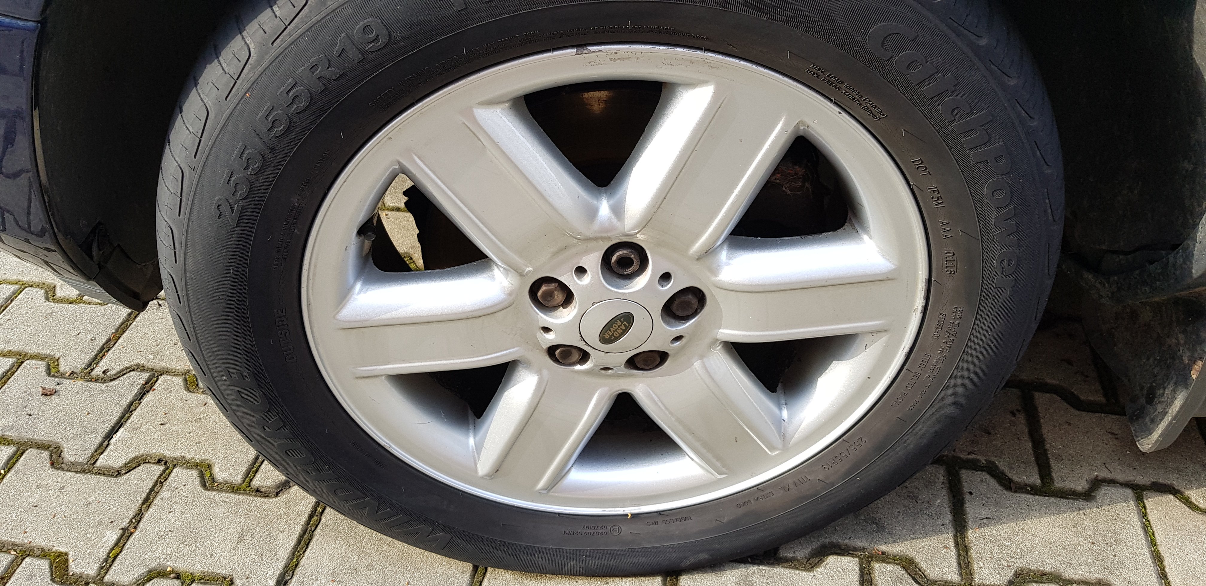 prodám tyhle originální 19" z Range Rover L322, včetně pneu, ale ty jsou nic moc, přední mají sjeté vnitřní hrany.