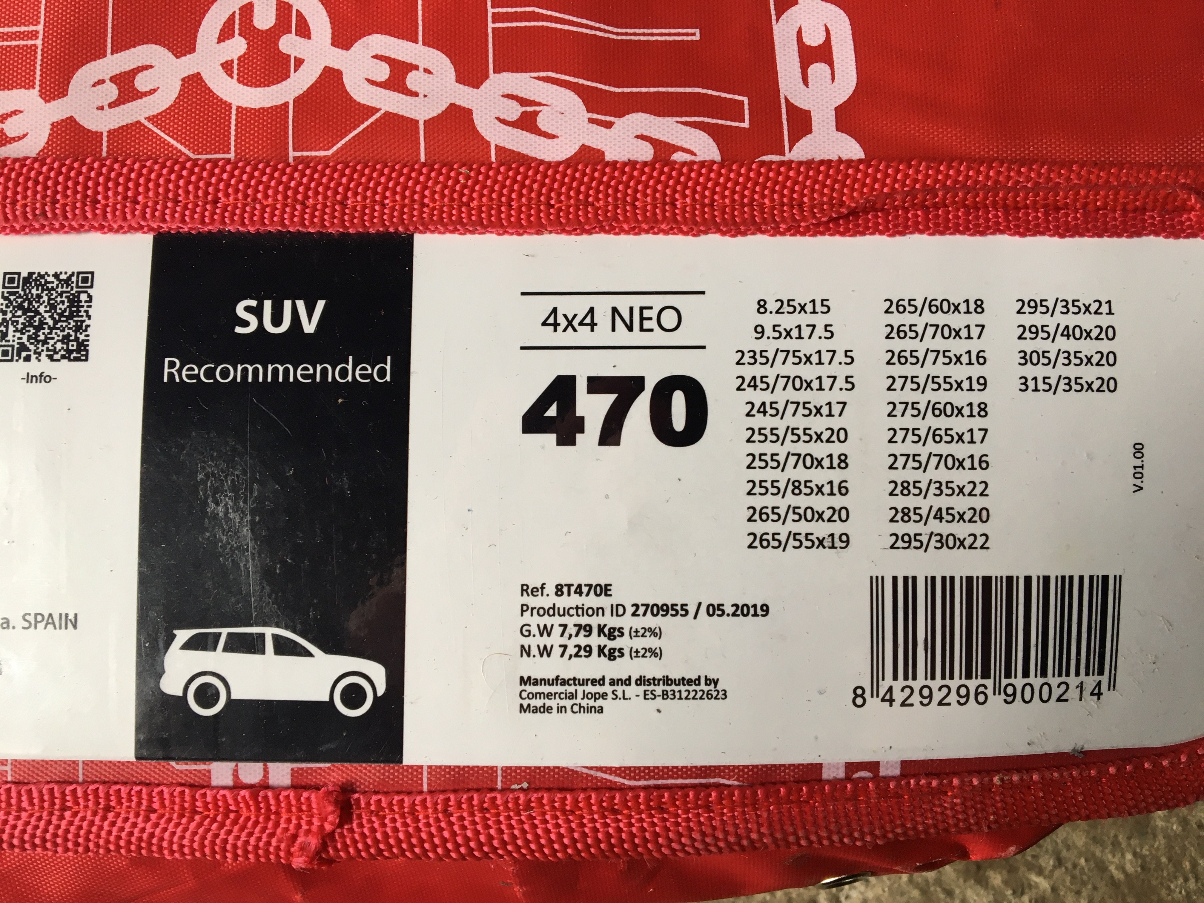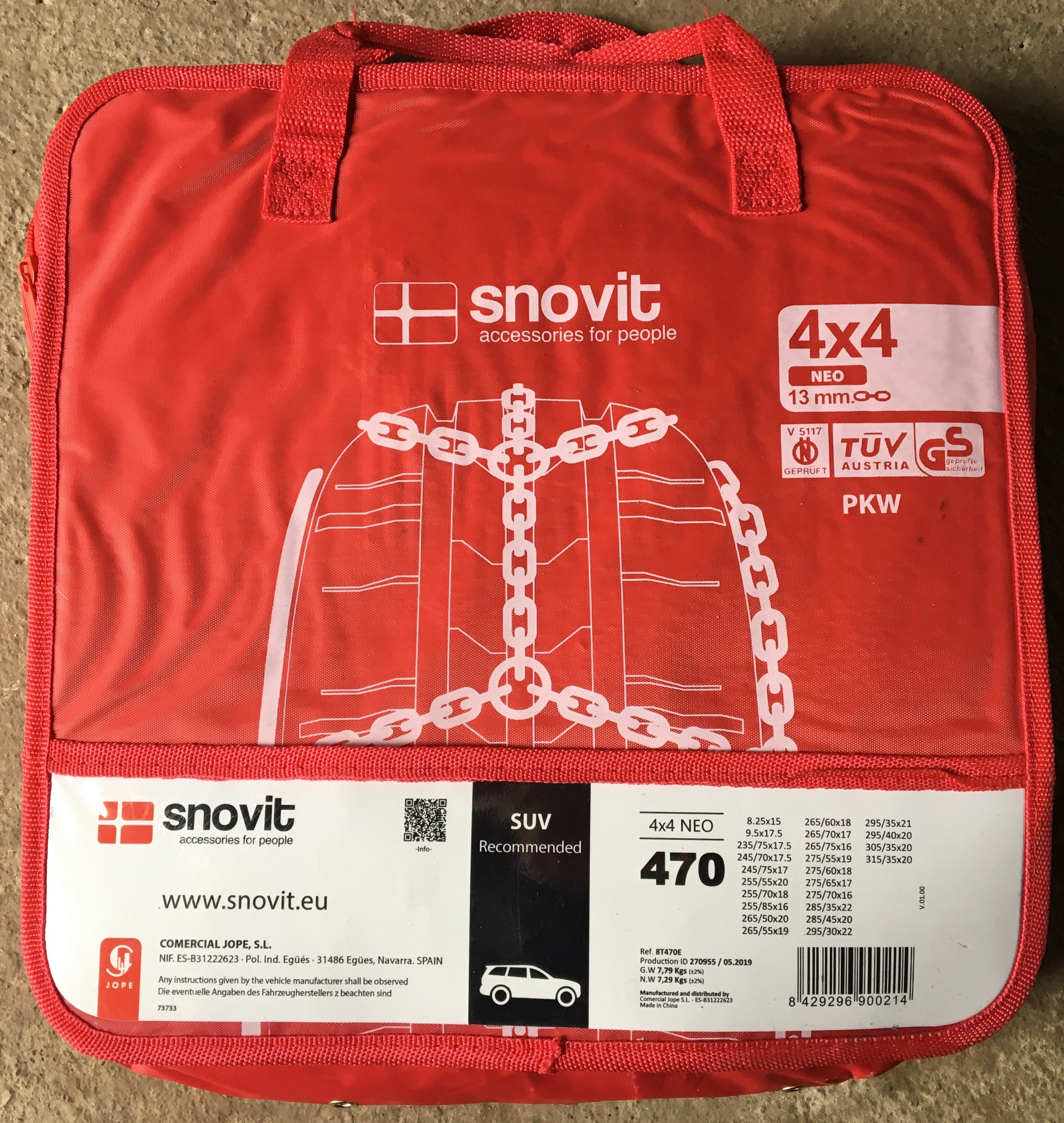 Prodám kvalitní zesílené sněhové řetězy značky SNOVIT NEO 4X4 470, oko 13mm dvě sady. Na první fotografii najdete rozměry pneumatik na které se mohou použít. Původně zakoupeno na LR Discovery.