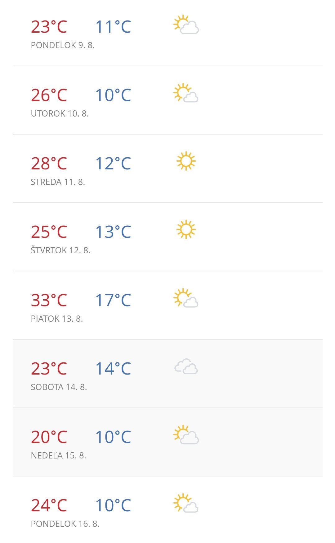 Predpokladané počasie na hviezdny vikend