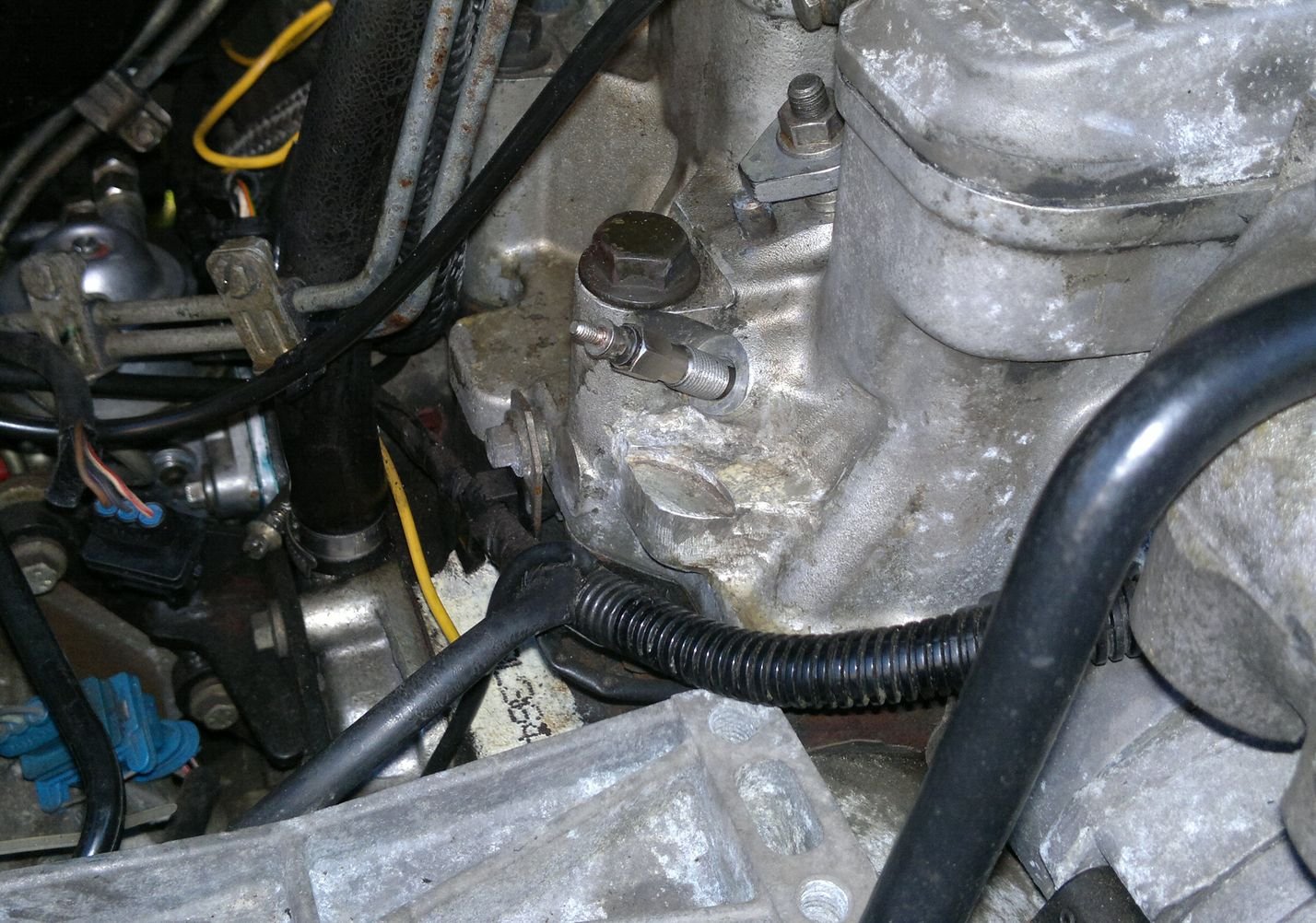 Před instalací EGRu na místo bylo nutné povolit záslepku. Pochopitelně opět problém - spodní šroub se usmyslel, že se zabydlí v turbu natrvalo. Že sem se na to nevys...