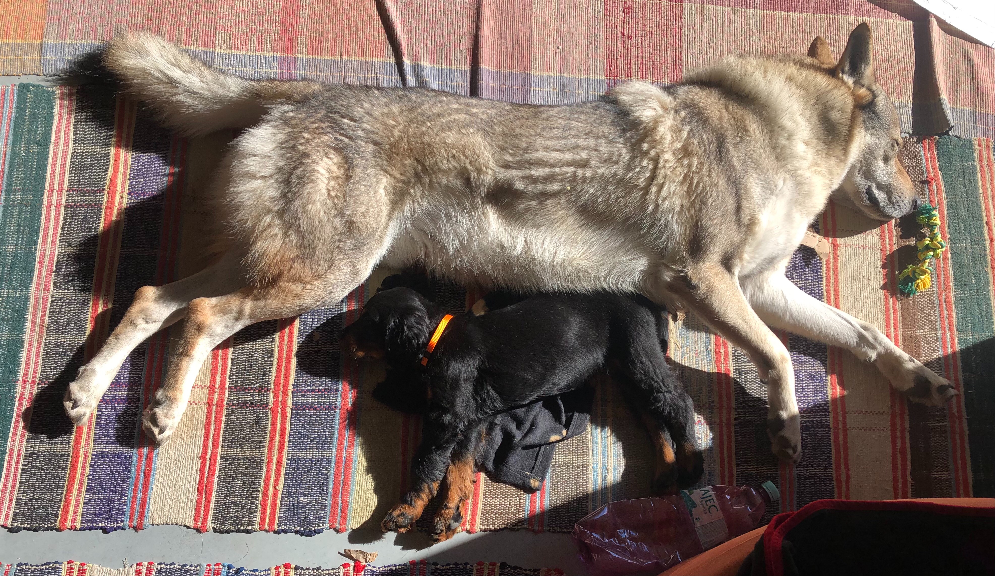 mal som obavu ako ju prijme do rodiny vodca smečky ale dopadlo to absolutne bez problemov , vlastne ma udivuje jeho trpezlivosť