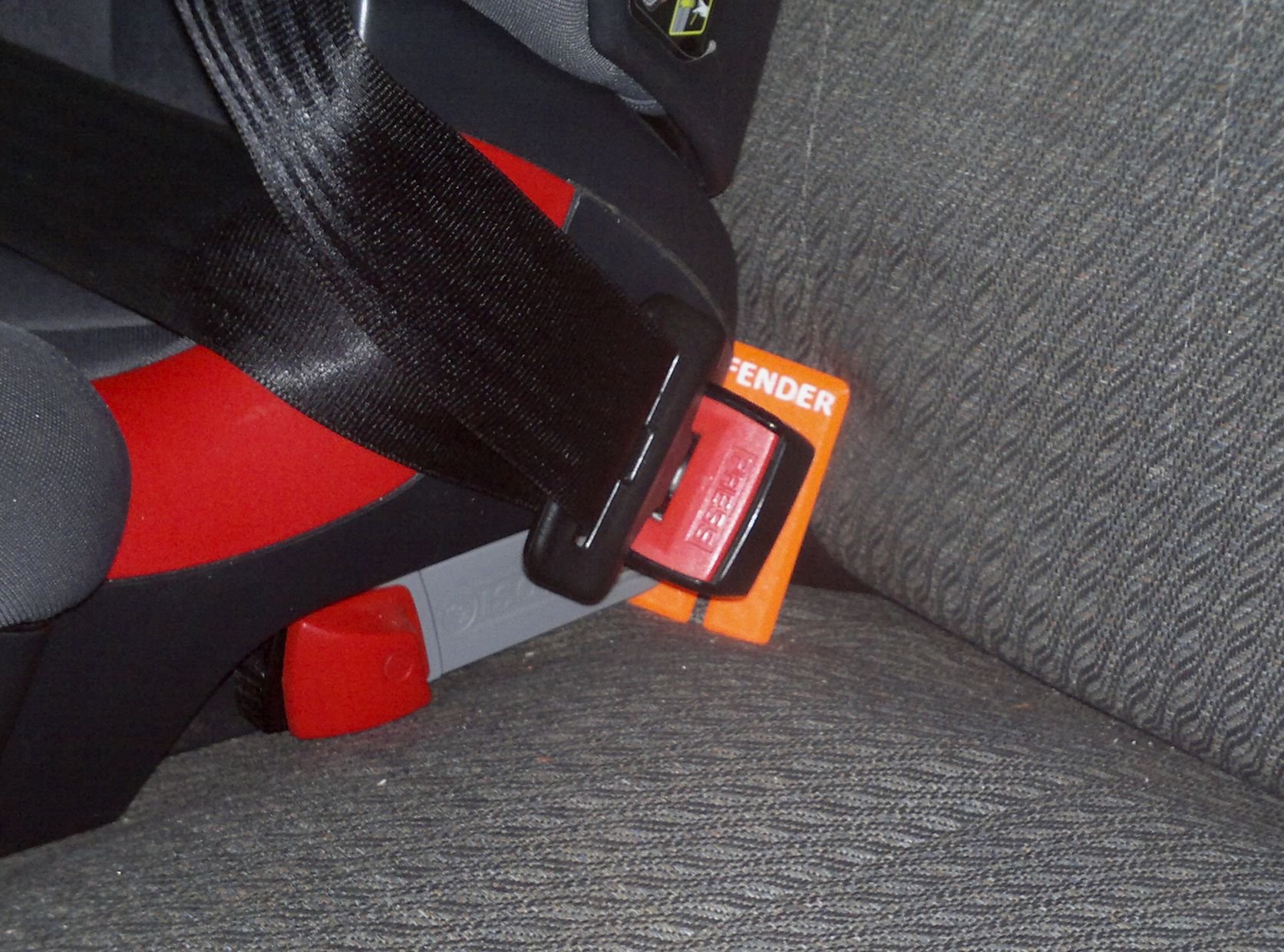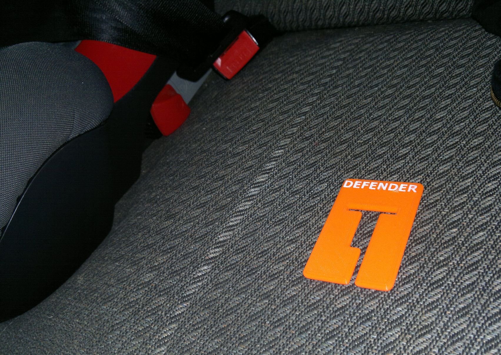 Nevím jak to dělají jiní, ale přišpendlit jednou rukou dítě do autosedačky na zadní sedačce bývá v Defíku někdy očistec. Hlavně ráno když člověk chvátá do školky a arbaitu. Zámek pásu se rád propadá do mezery mezi sedákem a opěradlem. Abych u toho furt nepěnil a nebo neposlouchal jak je to na prd od své drahé polovičky, tak jsem si vytvořil zarážku. Jen taková blbinka, ale co dokáže ušetřit nervů