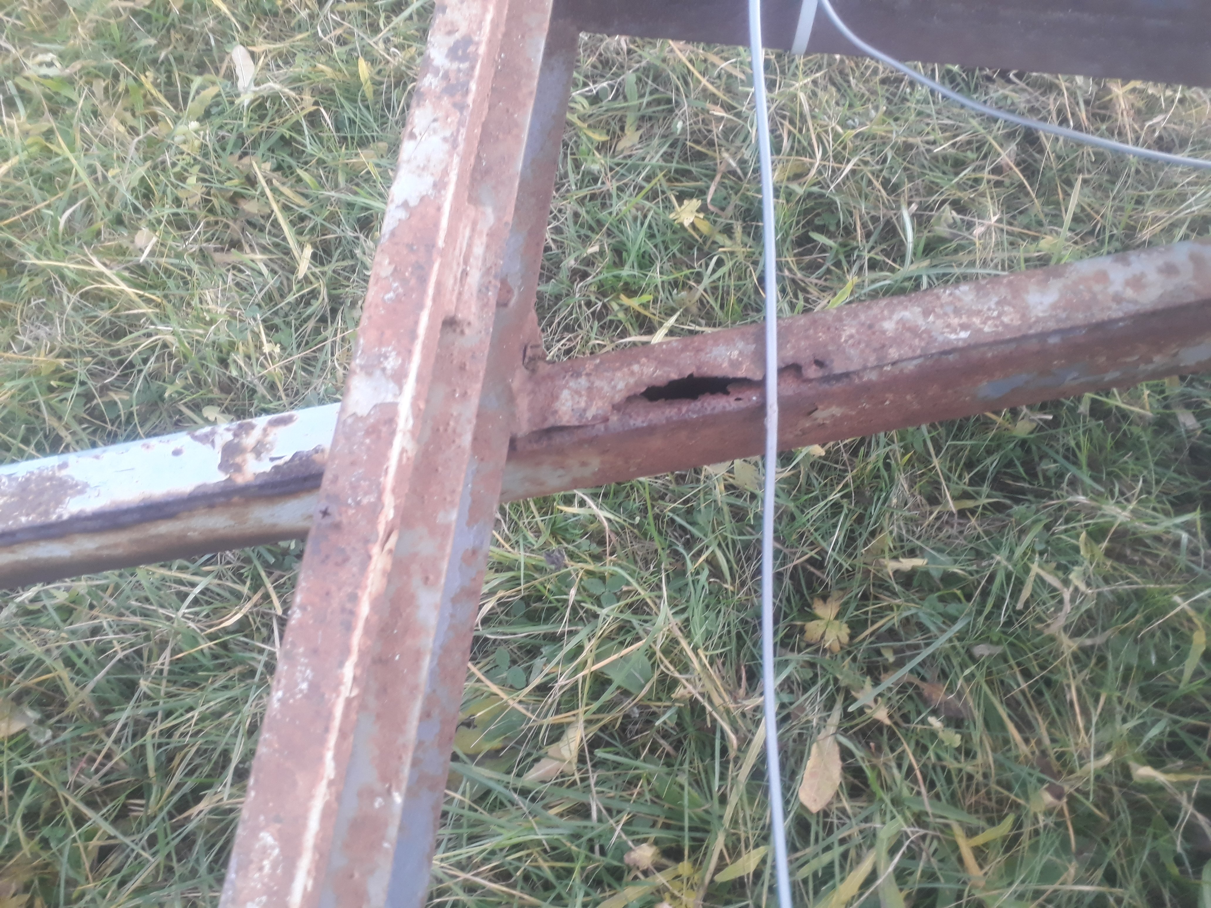 Jeden tlumič se kousnul a utrhnul držák tlumiče, zbyla po něm díra - na foto, ale i ten tlumič i ten vytrženej držák snad mám, takže to pujde navařit zpět.