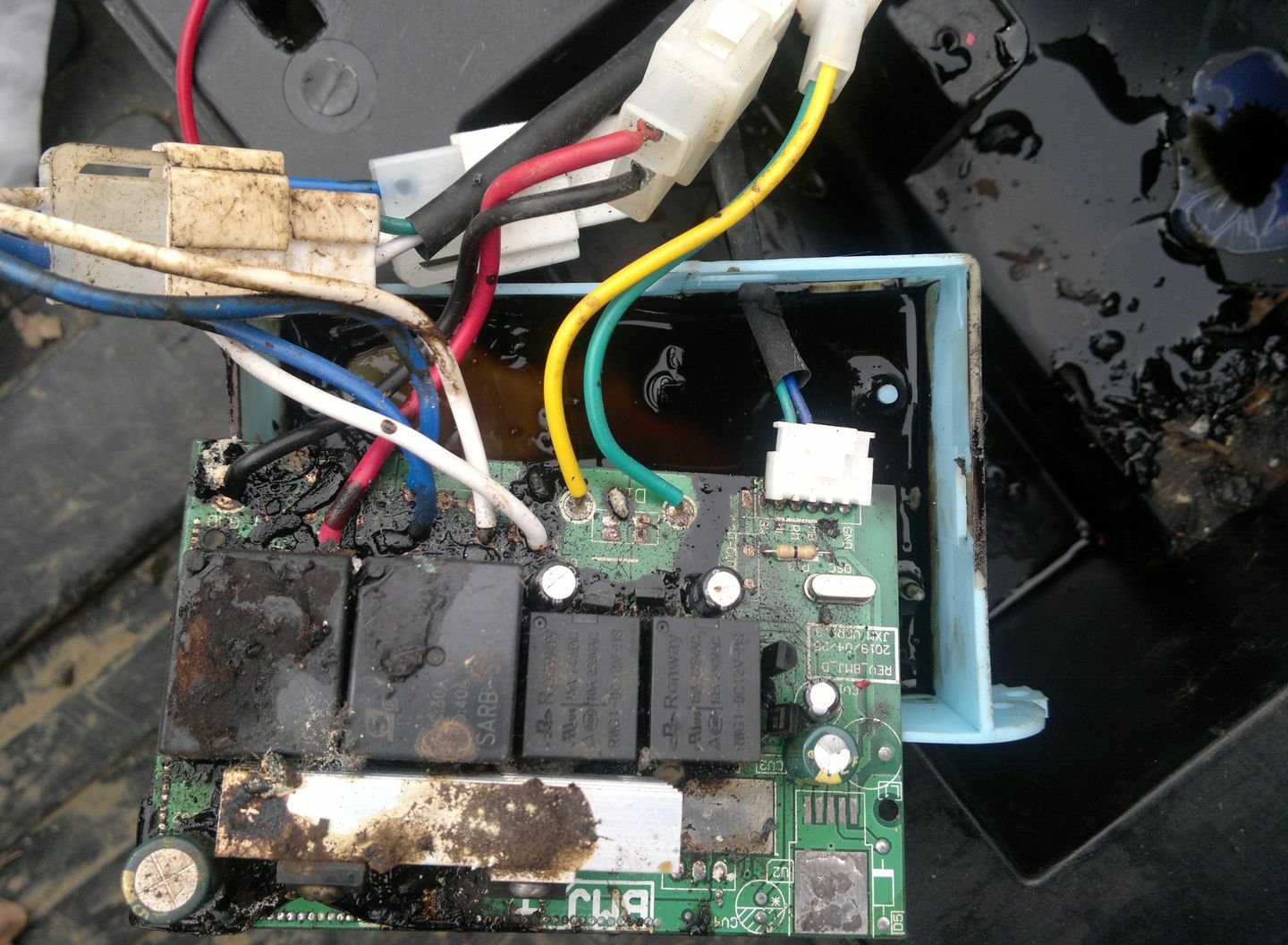 Desku elektroniky se mi nechtělo odstrojovat (hlavně relátka) a tak jsem jí nakonec vyčistil ultrazvukem v destilované vodě. Nějak to dopadne...