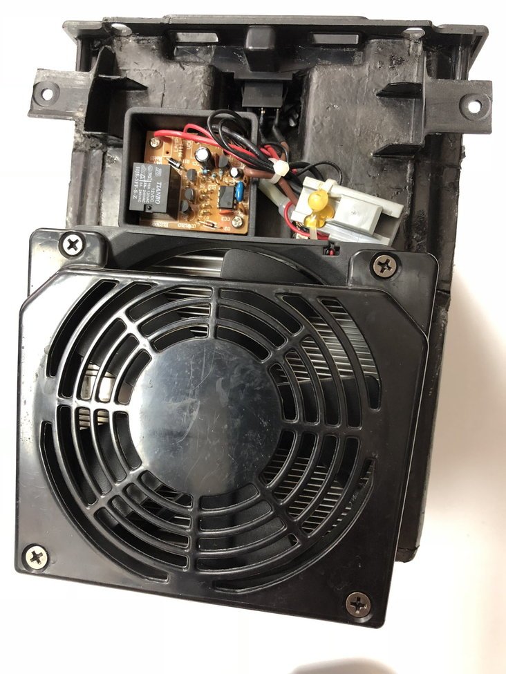 Zkontroloval bych vypínač, pak relé - to spíná přímo Peltiérův chladící článek, no a pak samotný článek, který je pod chladičem s ventilátorem. Ten Peltier je nejlepší vyzkoušet tak, že se odpojí od elektroniky a přivést na jeho vývody rovnou 12V. Je jedno jak, on se podle toho na jedné straně ohře a na druhé ochladí, stačí jen na chvíli. Měl by brát cca 4A.