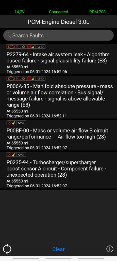 Tak "konecne" se problém znovu ukazal. [emoji846] Tentokrát kromě kolísání otáček i hláška omezeného výkonu motoru, oranžová kontrolka motoru a v diagnostice 4 chyby viz přiložený obrázek nize (z nejakeho duvodu ne s aktualnim datem).