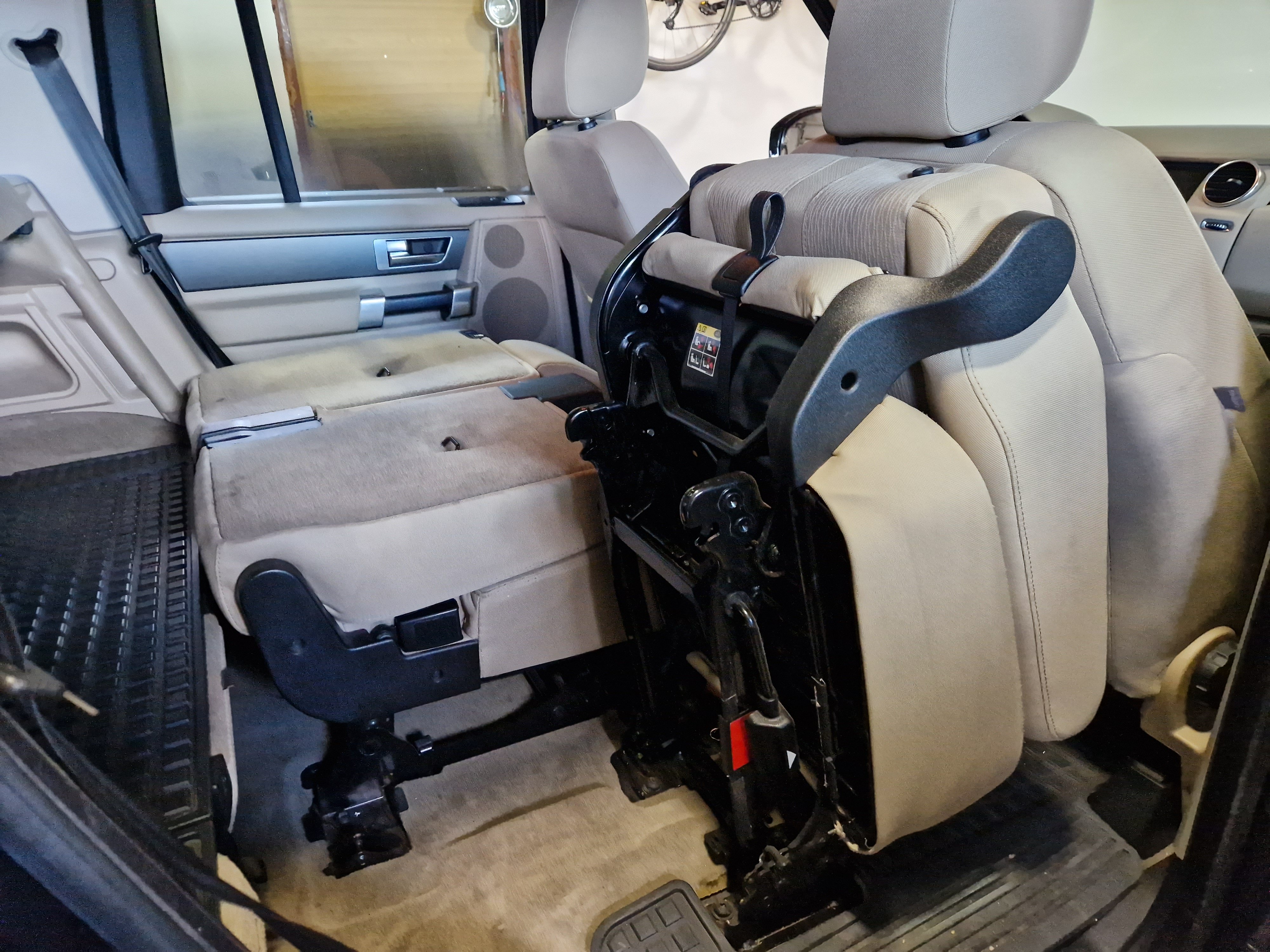 Prodám sedadla z Discovery 4 ve světlé látce. Bez poškození, jen špinavé. Manuální, bez výhřevů, řidičova bez předpínače pásů, jinak kompletní včetně airbagů atd. Druhá řada pro sedmimístnou verzi, tj. trojdílná, boční odklopné, všechny složitelné do podlahy aby udělali rovinu.