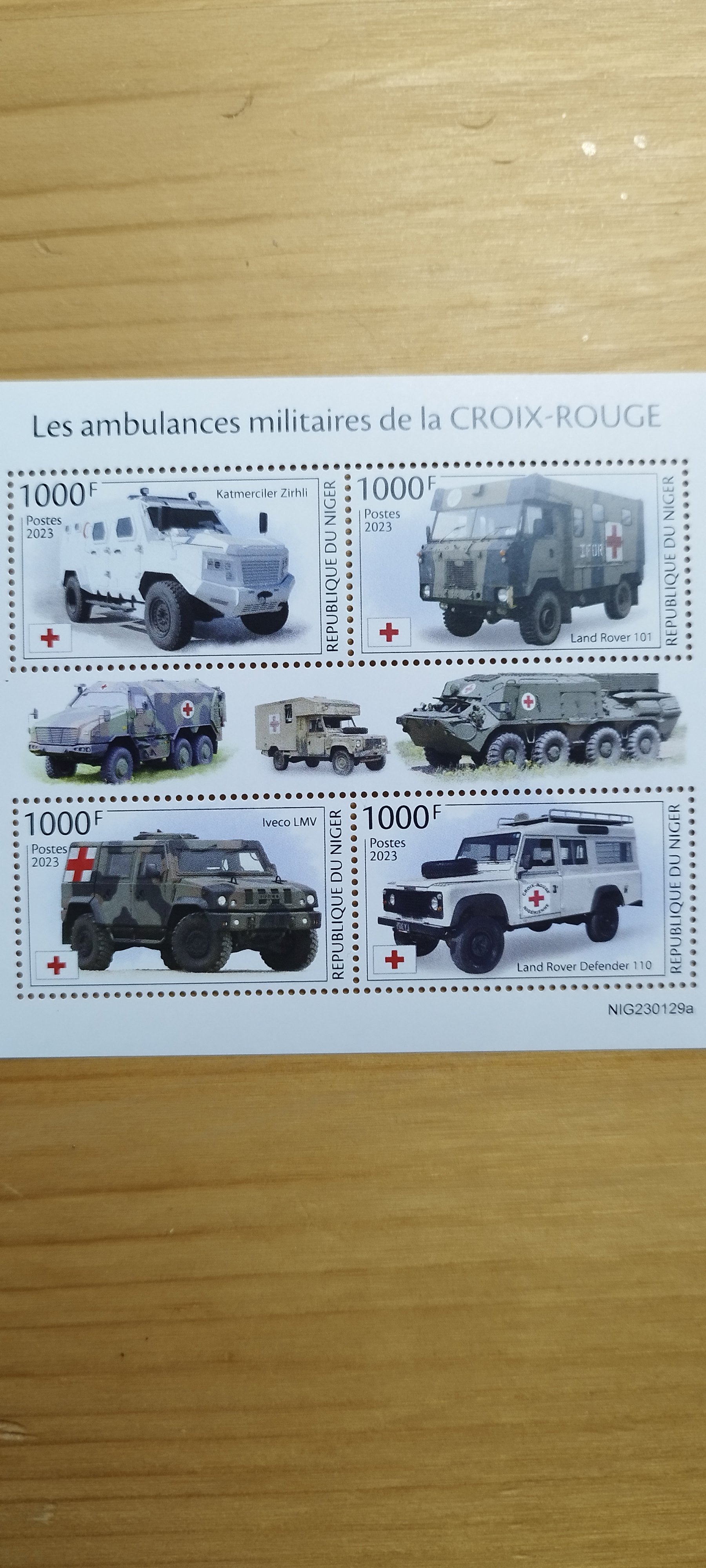 Prišiel aršik so znamkami s temou vojenskych sanitiek z Africkej krajiny Niger z roku 2023 na ktorej sa nachadza :