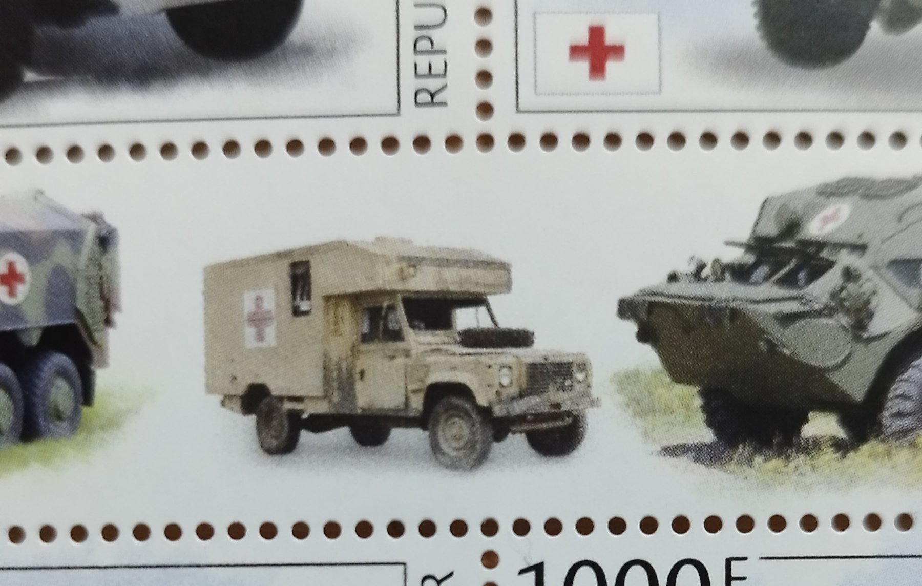 Na aršikoch z nametom vojenskych sanitiek z Rebublique de Djibouti (2022), je vidno LR Defender 130 "sanitka" a LR 101 Forward Control v uprave "sanitka" ktore vsak niesu predmetom znamky.