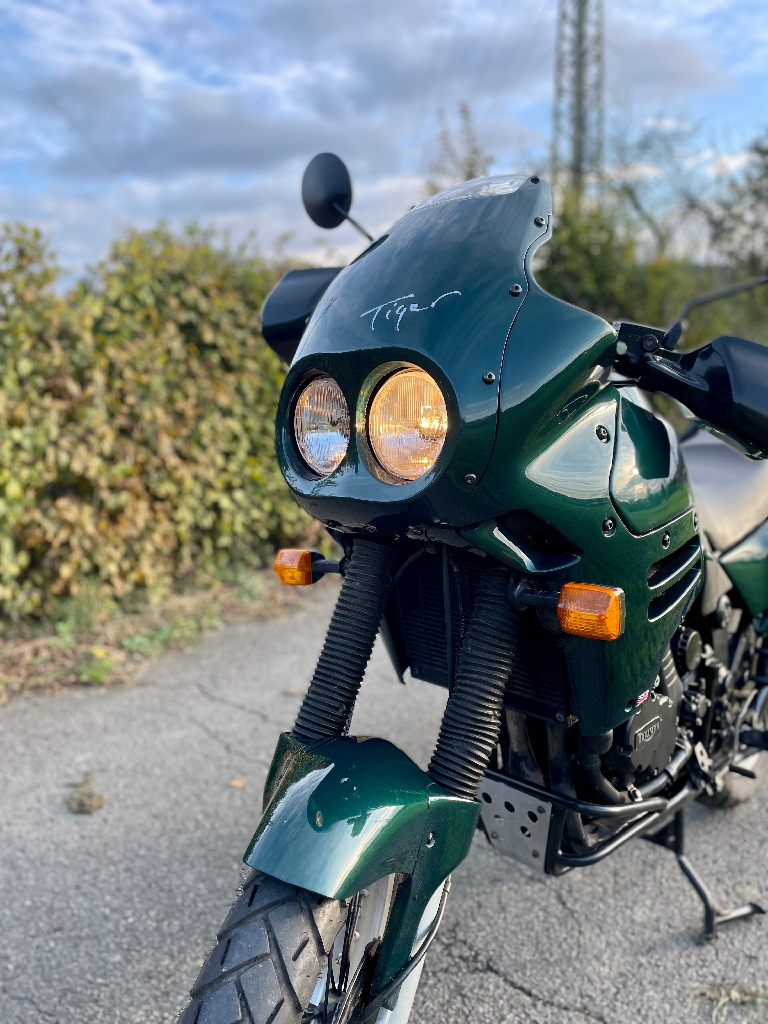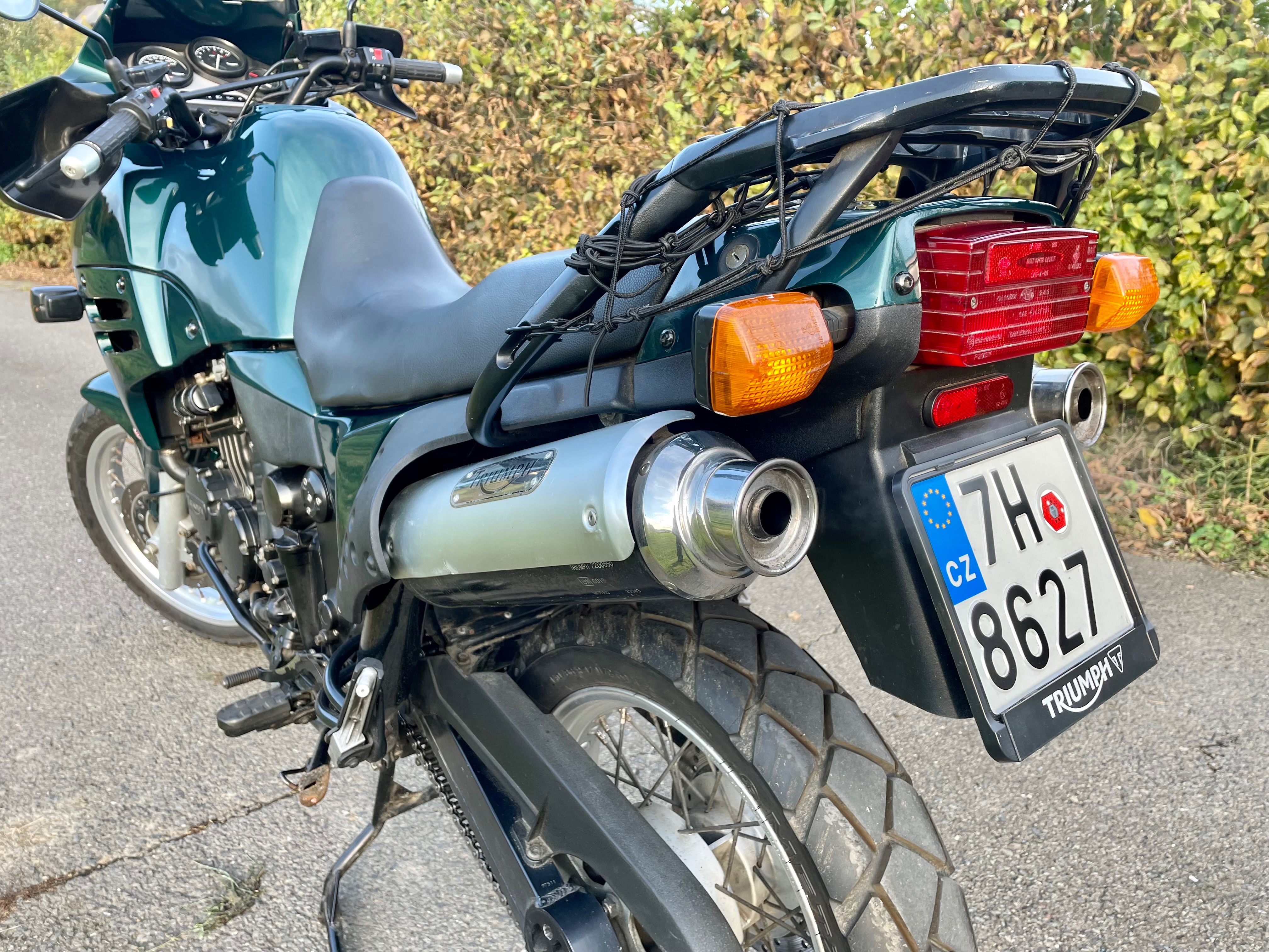Jedná se o Triumph Tiger 900 (T400) z roku 1997. Najeto má cca 50 500 km. Motorku mám dva roky, moc jsem s ní nestihl najezdit, protože do toho přišly rodičovské povinnosti a vzhledem k tomu, že ještě pár let budou, tak nechci, aby víc stála, než jezdila. Motorka mnou ježděna za hezkého počasí na výlety po okolí. Vzhledem k věku už však nějaké šrámy samozřejmě má.