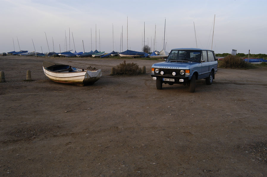 Vyjížděl jsem ve středu o půl páté ráno, abych stihnul s rezervou trajekt v šest večer z Dunkerque do Doveru. Byla to běžná dálniční rutina s výjimkou faktu, že jsem jel na benzín s pouze 35 l nádrží, takže to znamenalo každé dvě hodiny stavět a tankovat. RRC jel naprosto v pohodě a se spotřebou do 16-ti litrů, pokud jsem se držel 120 - 130-ti km/hod, což mě velmi příjemně překvapilo. Zpátky jsem jel v pondělí večer a s benzínem a LPG v nádržích jsem byl podstatně méně častým návštěvníkem pump. RPI je tradičně laděná anglická firma s anglickou atmosférou, s mnoha zajímavými auty a neodmyslitelným vrakovištěm. To ostatně můžete posoudit sami z fotografií. RPI se nachází poblíž Norwich v Norfolku a tak jsem si udělal 2 výlety na nedaleké pobřeží, abych nasál atmosféru anglického venkova, v hospůdkách si dal sem tam nějaký ten stout, bitter, či ale a popovídal si s místními, na které můj Rangie působil často jako magnet, takže jsem si s navazováním kontaktů nemusel příliš dělat hlavu. Angličanům se moc líbil, takže Bělečskému sanatoriu dělal čest. Angláni byli velmi potěšeni tím, že někdo v tak vzdálené zemi tak dobře pečuje o kus anglické automobilové historie. Loudání se po venkovských side roads a byways s kulisou brumlání spokojeného V8 pod kapotou bylo nezapomenutelné. Navíc mi přálo počasí, v Norfolku vládlo jarní slunce, takže se dalo chodit v krátkém rukávu. Oba výlety proběhly v podvečer, což zase přálo fotografiím s příjemně měkkým světlem.