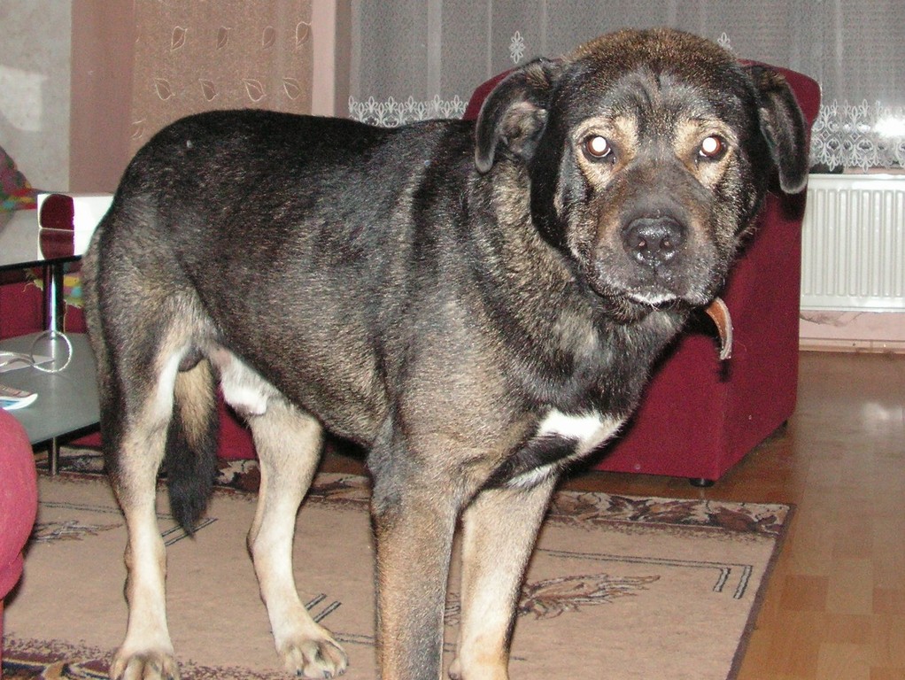 A toto je Ben, Podle papiru krizenec Brazilske Fily buhvi s cim, podle nas spis nejakej kavkazak, asi 8 roku, puvodem s utulku, mame ho rok a neco.