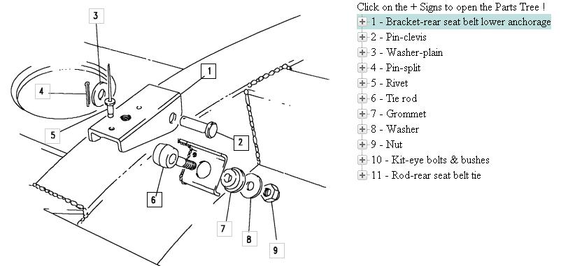 pozice č. 6.. Tie rod dva kousky, vzal bych taky ty dva torxy co drží samotný pásy přišroubený skrze podlahu do poz. 1-bracket.. Případně kompletní kondenzátor na klimošku..