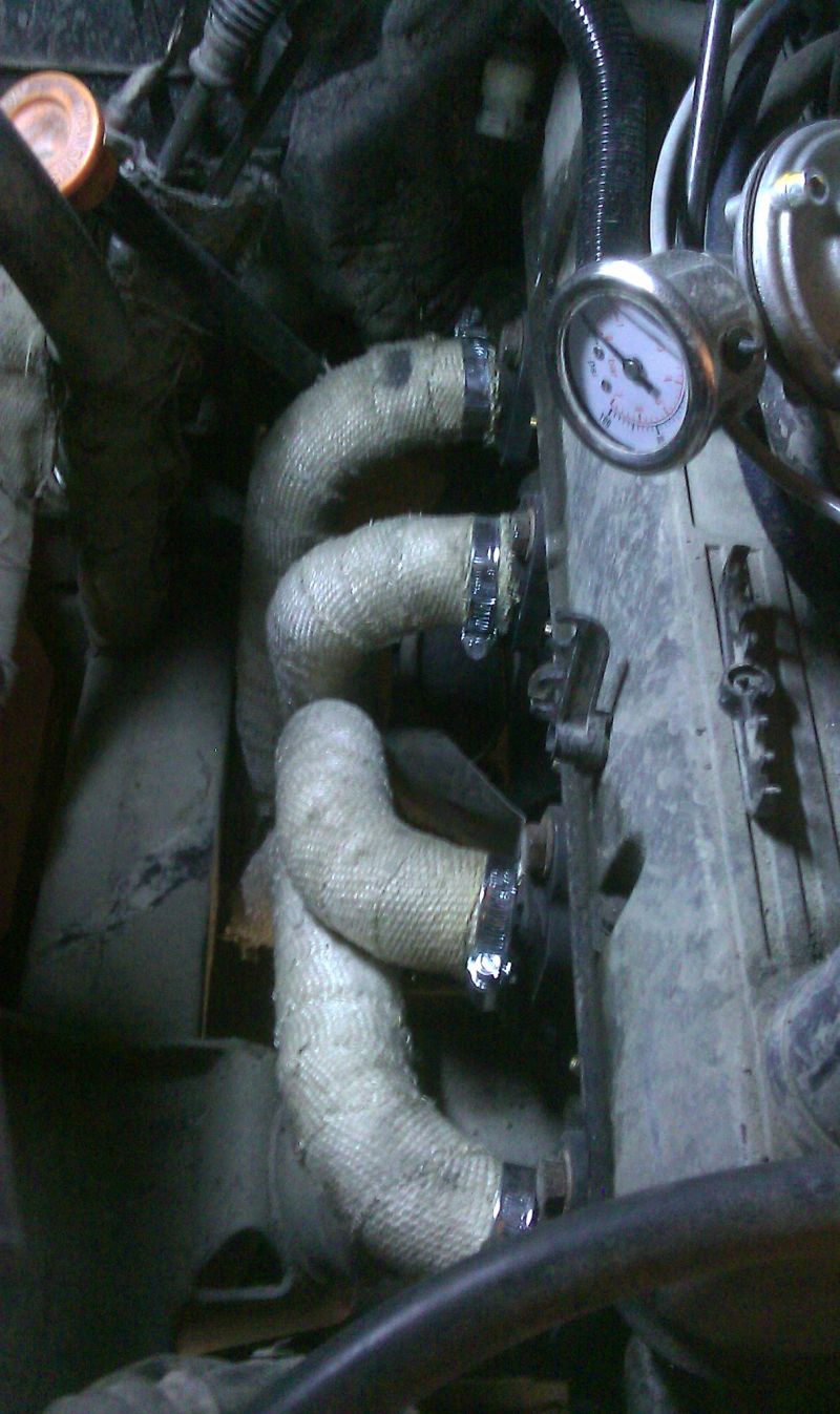 Tu izolacnu pasku som daval ako pokus ci to znizi teplotu v motorovom priestore. Inac mi to dost zkomplikovalo montaz zvodov, pretoze trubky na zvodoch su standardne velmi nahutno a ked som ich omotal paskou, ta ich trosku posunula odseba. Coho sa trosku obavam je, ze paska nasiakne vodou a bahnom. Ale dat ju dole nebude az taky problem ako montaz