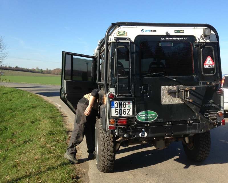 Sice nesvítí ani nebliká, ale jede! Dnes jsme konečně po měsících střídavě přerušované práce na expedičních úpravách provedli první zkušební jízdu s mým miláčkem Defendrem, kterýho jsme mimo jiné z manuální převodovky předělali na automat! Jede to, řadí to, brzdí to a nic z toho neteče! Huráááááááááááá!